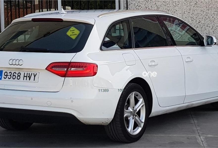 AUDI A4, Diesel, año 2014, 193577 kilómetros, color Blanco metalizado, precio 15490€. Paquete business,Asientos delanteros con regulación lumbar eléctrica,Asientos delanteros deportivos,Inserciones en aluminio Trigon,Tapicería en tela Atrium,Equipo de sonido Audi,Instalación manos libres (Bluetooth) para teléfono móvil,MMI navegación plus,Radio Simphony,Reposabrazos central delantero,Aro del volante en cuero Audi exclusive,Control automático de velocidad (Tempomat),Dirección dinámica "dynamic steering",Elementos de control en cuero Audi exclusive,Espejo retrovisor interior antideslumbrante automático con sensor de luz y lluvia,Faros de xenón plus con luz de marcha diurna con técnica LED,Lavafaros,Luz adaptativa "dynamic adactative light",Sensor de luz y lluvia,Tela Atrium Gris Luz - Asientos Deportivos,Blanco Glaciar (metalizado),Barras laterales en el techo pulidas,Llantas de aleación 7,5Jx16 diseño 5 brazos con neumáticos 225/55 R 16,Pintura metalizada,Sin inscripción trasera de modelo y tecnología,Tornillos de rueda antirrobo,Control de crucero adaptativo,Parking control plus. AUDI A4 AVANT 2.0 TDI 150CV MULTITRONIC 5P