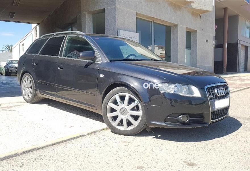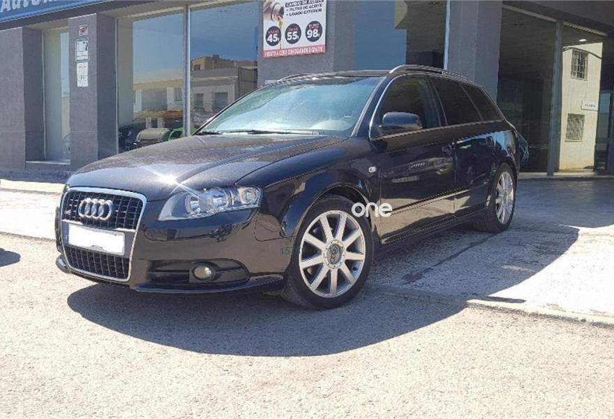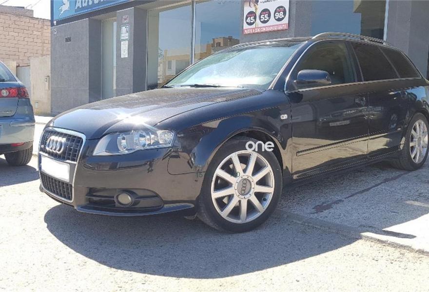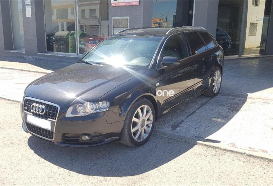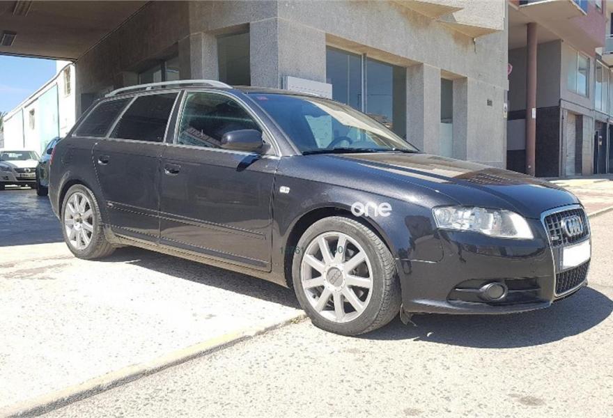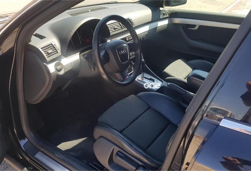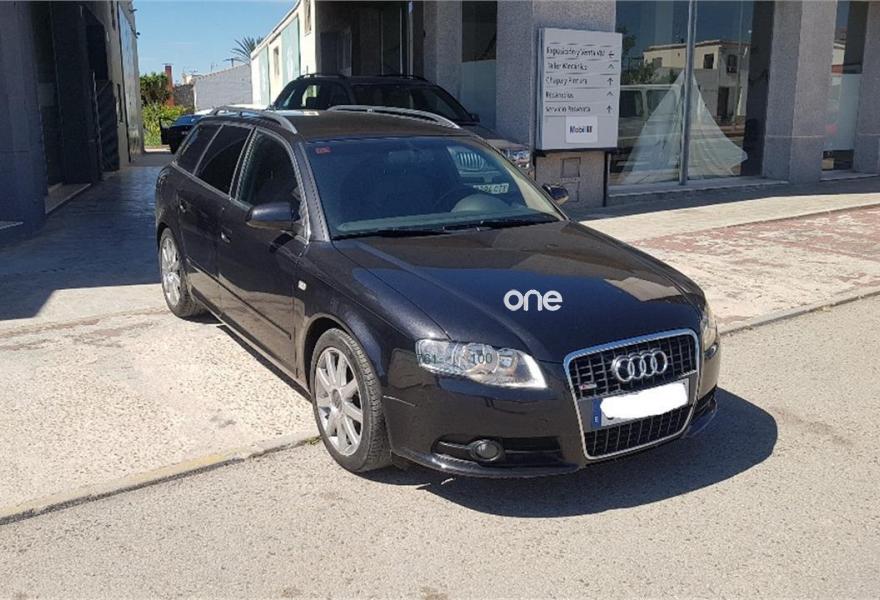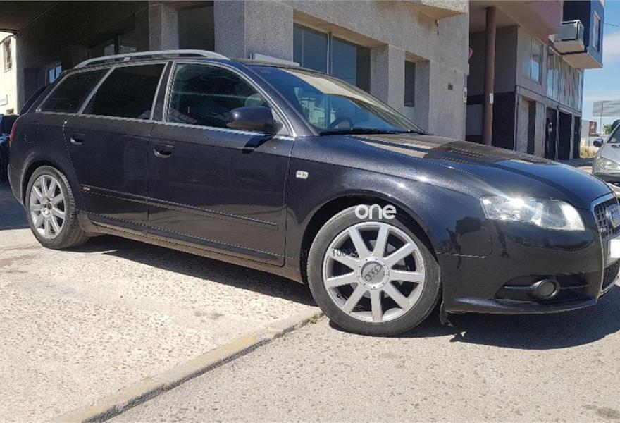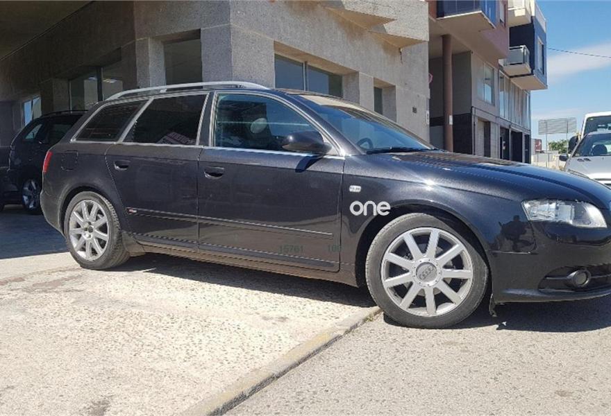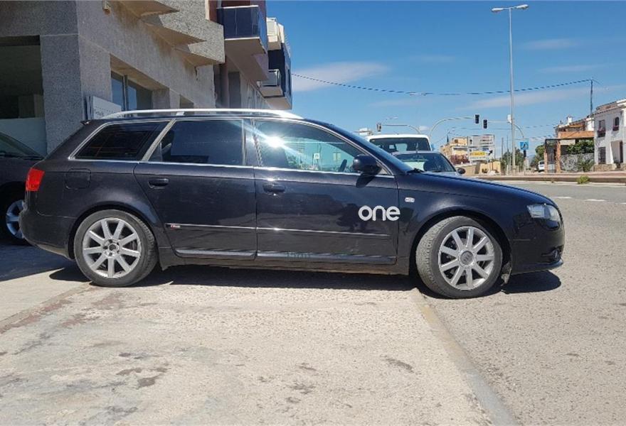 AUDI A4, Diesel, año 2008, 187000 kilómetros, color Negro metalizado, precio 10990€. Airbags laterales traseros,Sistema de Aparcamiento Acústico APS trasero,Suspensión deportiva S line,Espejo retrovisor interior antideslumbrante automático con sensor de luces y lluvia y luz de marcha diurna,Alcántara/Cuero Negro,Asiento del acompañante regulable en altura,Audi exclusive line,Paquete deportivo S line,Preinstalación de teléfono móvil con kit manos libres (Bluetooth),Cortinilla enrollable manualmente para las lunas de las partes traseras,Volante deportivo S line de tres radios multifuncional en cuero perforado color negro/costuras en color,Control automático de velocidad (Tempomat),Espejo retrovisor interior antideslumbrante automático con sensor de luces y lluvia,Espejos retrovisores exteriores calefactables,Llantas de aleación 7,5Jx17 diseño 9 brazos en Y con neumáticos 235/45 R 17 Y,Negro Brillante,Paquete exterior S line,Sin inscripción trasera de cilindrada,Sin insripción tras de modelo/cilindrada. Ofrecemos servicio de tasación y compra de vehículos.