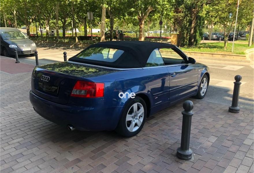 AUDI A4, Gasolina, año 2002, 180000 kilómetros, color Azul metalizado, precio 4500€. Asientos del. regula. lumbar,Asientos deportivos delanteros,Cuero Napa perla,Reposabrazos delantero,Equipo de sonido BOSE,CUERO NAPA BEIGE-BEIGE,Faros de Xenón con lavafaros incorporado,Volante deportivo tres radios,AZUL AGUAMARINA METALIZADO. Audi a4 cabrio s-line 2.4,azul,cambio manual,tapicerÍa en cuero beige,acabado interior en madera,asientos delanteros calefactables,asientos delanteros con regulaciÓn eléctrica,equipo de sonido bose,sistema de navegación,capota averiada*, km certificados,2 llaves. mas in Formación en tienda,teléfono o mail.