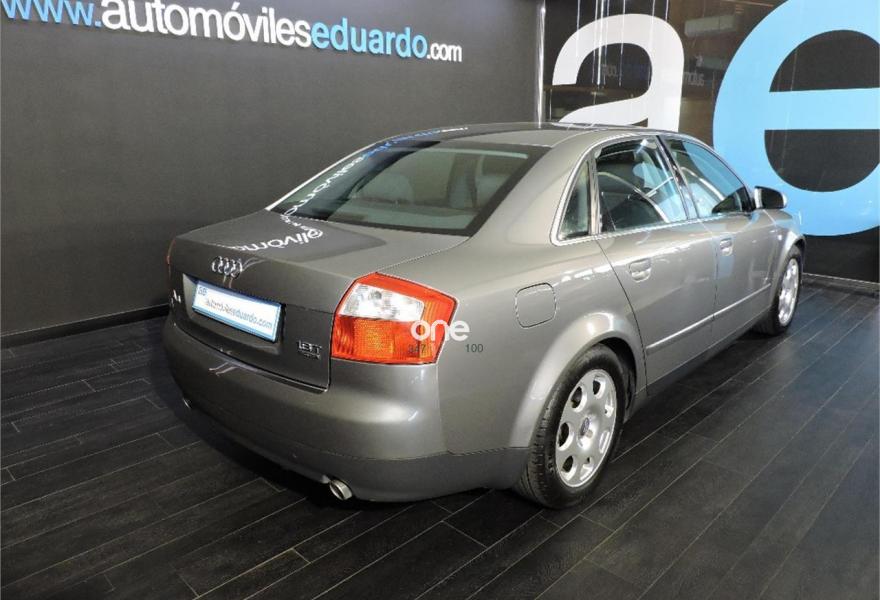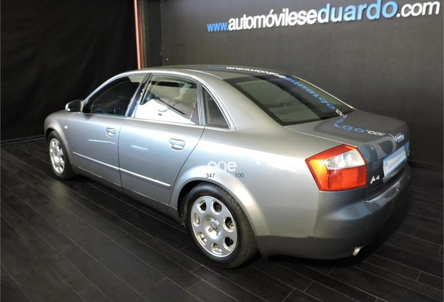 AUDI A4, Gasolina, año 2004, 181721 kilómetros, color Gris / Plata metalizado, precio 4900€. Volante multifuncional,Pintura metalizada,Pomo cambio cuero especial,Llantas 7x16 7 orificios 215/55R16Y,Gris delfín metalizado. Climatizador bi-zona, Airbag conductor, Airbag acompañante, Airbags laterales, Airbags de cabeza, Dirección asistida, Cierre centralizado, Cierre centralizado con mando a distancia, Elevalunas del/tras eléctricos, Reposabrazos central delantero, Equipo de música, Cargador de CD´s, Palanca de cambio en cuero, ABS,Control de tracción,Ordenador, Llantas de aleación 16”, Faros antiniebla, Cargador de CD's, Radio Chorus,Tapizado tela Phönix, Volante de cuero multifunción, Alarma, Sistema de información al conductor monocromo, Luces adicionales en habitáculo,6 velocidades, Suspensión deportiva,4x4.