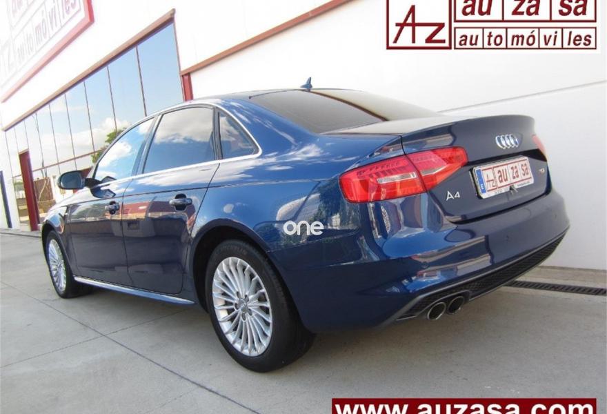 AUDI A4, Diesel, año 2014, 129000 kilómetros, color Azul metalizado, precio 15300€. Paquete business,Paquete técnico,Inserciones interiores en aluminio mate cepillado,Paquete deportivo S line,Equipo de sonido Audi,Instalación manos libres (Bluetooth) para teléfono móvil,MMI navegación plus,Reposabrazos central delantero,Asistente de luz de carretera "smart beam",Control automático de velocidad (Tempomat),Espejo retrovisor interior antideslumbrante automático con sensor de luz y lluvia,Faros de xenón plus con luz de marcha diurna con técnica LED,Faros inteligentes "smart beam",Instalación manos libres (Bluetooth) para teléfono móvil y apoyabrazos central delantero,Lavafaros,Paquete exterior S line,Sensor de luz y lluvia,Sistema de alarma antirrobo,Azul Lunar (metalizado),Llantas de aleación 7,5Jx17 diseño 20 radios Dynamik con neumáticos 225/50 R 17,Pintura metalizada,Audi hold assist,Fijación para tres asientos infantiles ISOFIX y desactivador airbag del acompañante,Parking control trasero. NACIONAL. Procedente directamente de Concesión oficial AUDI.