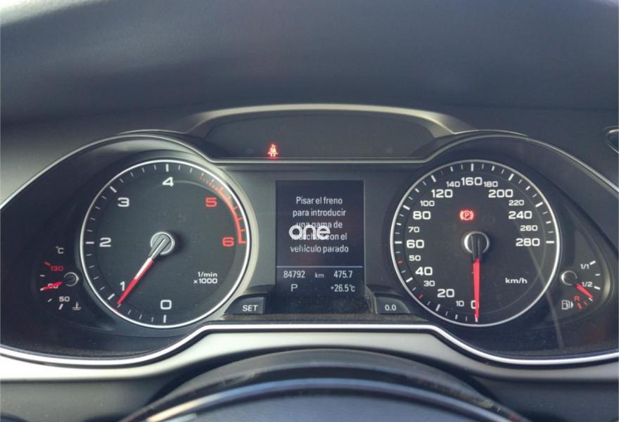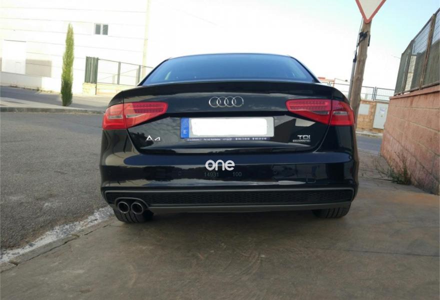 AUDI A4, Diesel, año 2015, 84780 kilómetros, color Negro , precio 21900€. Paquete exterior S line,Faros de xenón plus con luz de marcha diurna con técnica LED,Llantas de aleación 7,5Jx17 diseño 5 brazos con neumáticos 225/50 R 17,Negro Mito (metalizado),Suspensión deportiva S line,Volante deportivo de tres radios multifuncional con levas para el cambio multitronic/S tronic. Audi A4 2.0 TDI 190cv tracción total permanente Quattro, con cambio automático s tronic, paquete exterior S Line, matriculado en Febrero de 2015 con 84.800km, pintura metalizada, luz diurna led, faros xenon plus, faros traseros led, encendido automático de luces, sensor de lluvia, sensor de parking trasero, volante deportivo multifunción, retrovisores plegables y regulables eléctricamente, asientos deportivos con apoyo lumbar regulable eléctricamente,suspensión deportiva,elevalunas eléctricos delanteros y traseros, sistema star & stop, llantas de aluminio de 17",freno de estacionamiento eléctrico, ayuda a la salida en pendientes,climatizador, control de velocidad, sistema de audio concert,bluetooth, ABS, múltiples airbags...