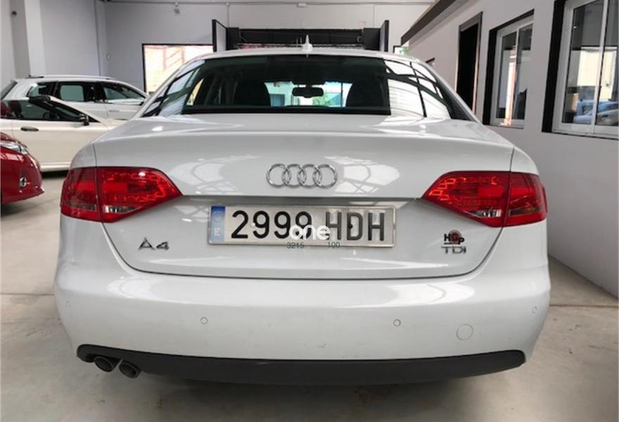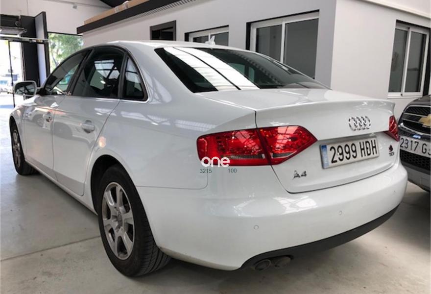 AUDI A4, Diesel, año 2011, 130000 kilómetros, color Blanco metalizado, precio 14900€. Paquete técnico,Paquete business,Inserciones interiores en aluminio mate,Paquete portaobjetos,Tapicería en tela Arkana,Equipo de sonido Audi,Instalación básica manos libres (Bluetooth) para teléfono móvil,Paquete maletero,Reposabrazos central delantero,Preinstalación de teléfono móvil con kit manos libres (Bluetooth),Intercambiador de CD para MMI navegación plus,Control de crucero adaptativo,Control automático de velocidad (Tempomat),Dirección dinámica "dynamic steering",Espejo retrovisor interior antideslumbrante automático,Espejos retrovisores exteriores antideslumbrantes automáticos y plegables eléctricamente,Faros de xenón Plus,Lavafaros,MMI navegación plus,Sensor de luces y lluvia,Sistema de alarma antirrobo,Tela Arkana Gris Luz - Asientos Normales,Volante cuatro radios multifuncional multitronic/tiptronic,Blanco Glaciar (metalizado),Llantas de aleación 7,5Jx16 diseño 7 brazos con neumáticos 225/55 R 16,Pintura metalizada,Sin inscripción trasera de modelo y tecnología,Sin inscripción trasera de tecnología,Suspensión deportiva,Sistema de Aparcamiento Acústico APS trasero,Fijación para tres asientos infantiles ISOFIX y desactivador airbag del acompañante,Airbags laterales traseros. Vehículo nacional con todo el mantenimiento al día en concesionario oficial Audi, único propietario no fumador, de estado impecable tanto interior como exterior.