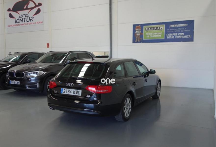 AUDI A4, Diesel, año 2015, 105334 kilómetros, color Negro metalizado, precio 16900€. Paquete técnico,Paquete business,Tapicería en tela Atrium,Inserciones interiores en aluminio mate cepillado,Audi music interface,Equipo de sonido Audi,MMI navegación,Radio digital DAB,Control automático de velocidad (Tempomat),Sensor de luz y lluvia,Tela Atrium Negro,Paquete estilo, color negro,Negro Mito (metalizado),Tornillos de rueda antirrobo,Pintura metalizada,Parking control trasero,Fijación para tres asientos infantiles ISOFIX y desactivador airbag del acompañante. El coche esta en perfecto estado.Tiene 12 MESES DE GARANTIA, libro de revisiones al dia,km garantizados por escrito y certificados.Climatizador bizona,navegador,control de velocidad,elevalunas electricos ,espejos electricos ,esp,radio cd con entrada auxilar ,ordenador de a bordo,bluetooth,apoyabrazo,sensores de aparcamiento .Mejor Verlo.Se accepta prueba mecanica.ACEPTAMOS VEHICULO COMO PARTE DE PAGO. TODOS NUESTROS VEHICULOS SE ENTREGAN TOTALMENTE REVISADOS Y KILOMETROS CERTIFICADOS..