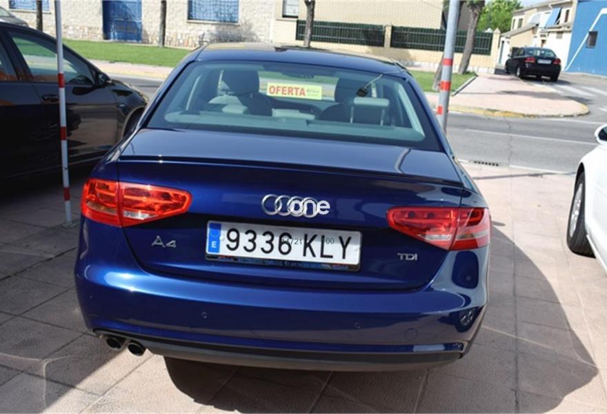 AUDI A4, Diesel, año 2013, 81000 kilómetros, color Azul metalizado, precio 16900€. garantia 1 año oficial de audi, trasferencia, y revision , total 16.900€ financiado vehiculo sujeto a oferta de financiacion si financiar 18.900€ en calle,somos antigua concesion de seat ,con talleres propios,llantas de aluminio,con cosas del acabado s.line, climatizador digital ,chasis de aluminio,ordenador de abordo,velocidad de crucero,abs,esp,star stock,aleron trasero,cromados en tiradores,regalo de gps navegacion , direccion asistida, elevalunas electricos,volante multifuncion,sensores de aparcamiento,2.0tdi 143cv 6 velocidades, minimo consumo,y muchos extras mas,,fecha exacta 26-03-2013