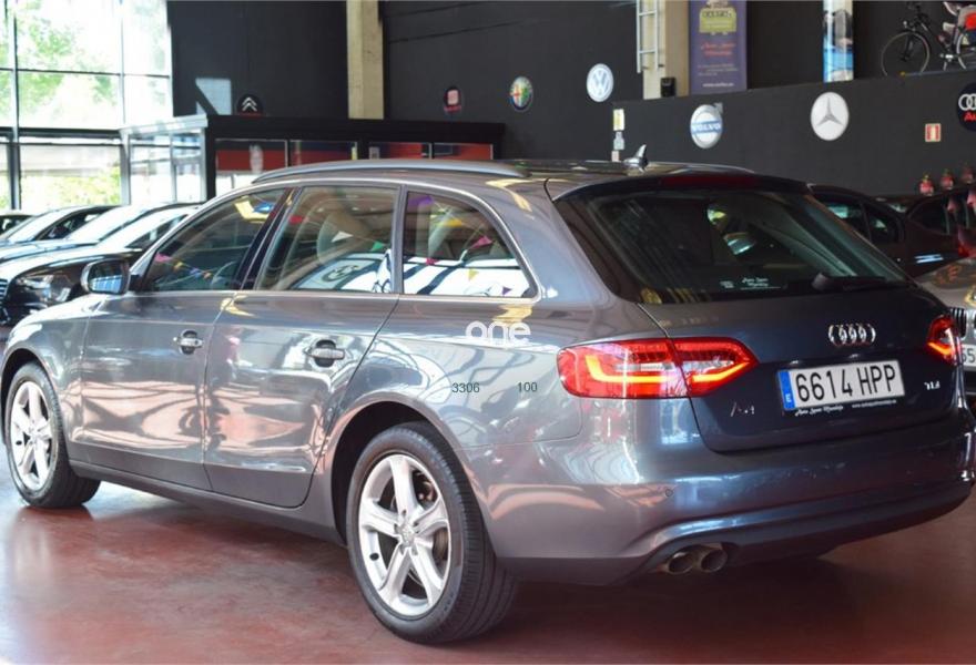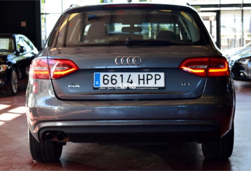AUDI A4, Diesel, año 2013, 121700 kilómetros, color Gris / Plata (Monzón) metalizado, precio 17600€. Asientos delanteros con regulación lumbar eléctrica,Tapicería en tela Atrium,Equipo de sonido Audi,Instalación básica manos libres (Bluetooth) para teléfono móvil,Reposabrazos central delantero,Asistente de luz de carretera "smart beam",Control automático de velocidad (Tempomat),Cortinilla enrollable manual en ventanillas de las puertas traseras,Espejo retrovisor interior antideslumbrante automático con sensor de luz y lluvia,Lavafaros,Sistema de alarma antirrobo,Tela Coseno Negro - Asientos Normales,Barras laterales negras en el techo,Gris Monzón (metalizado),Pintura metalizada,Fijación para tres asientos infantiles ISOFIX y desactivador airbag del acompañante. *Llévatelo por 16.600€, financiando un mínimo de 10.000€ a partir de 72 Meses Vehículo Nacional de un único propietario. Última Revisión en Concesionario Oficial Audi (Motorsan S.L) el 14/03/2017 a los 120277Kms. En el precio se incluye: IVA (Deducible), Transferencia y Garantía de un año. La Certificación de Kilómetros y que no ha sufrido golpes estructurales, queda reflejado en el Contrato. Todos nuestros vehículos disponen de un informe independiente y objetivo // Abierto 365 días - Financiación sin entrada 269€/Mes - Web: autosportmor//