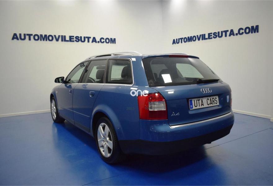 AUDI A4, Diesel, año 2003, 199000 kilómetros, color Azul metalizado, precio 4999€. Cuero/Alcántara Avant,Volante multifuncional,Techo eléctrico de cristal,Azul cristal metalizado,Pintura metalizada,Airbag laterales traseros,Rueda de emergencia,Parabris doble+térmic y crist. laterals. 1 año de Garantía