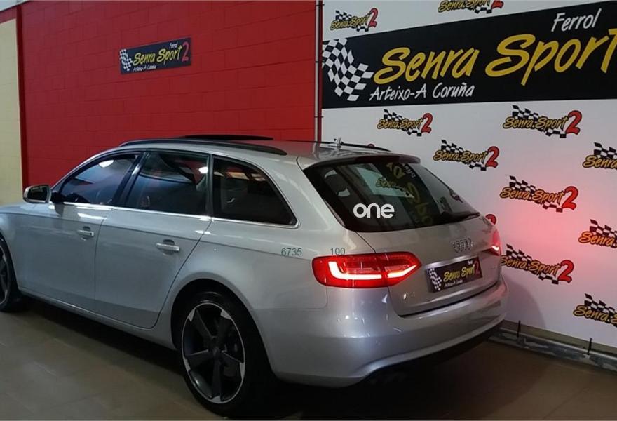 AUDI A4, Diesel, año 2013, 113000 kilómetros, color Gris / Plata metalizado, precio 16900€. SENRA SPORT 2 ARTEIXO/FERROL VENDE: AUDI A4 2.0 TDI AVANT 143CV, BIXENON, TECHO SOLAR PANORAMICO, SENSOR LUCES Y LLUVIA, REGULADOR VELOCIDAD, NAVEGADOR, MANOS LIBRES, SENSOR APARCAMIENTO DELANTERO Y TRASERO, LLANTA 19, PINTURA METALIZADA, VOLANTE MULTIFUNCION, START STOP, SENSOR PRESION NEUMATICOS, CORTINILLAS TRASERAS, SISTEMA DE SONIDO DSP, PILOTOS TRASEROS TIPO LED, COCHE NACIONAL CON TODO EL HISTORAL DE MANTENIMIENTO. +++OFERTA SUJETA A FINANCIACION+++.