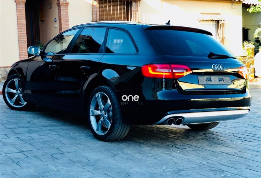 AUDI A4, Diesel, año 2015, 120000 kilómetros, color Negro metalizado, precio 20000€. Audi drive select,Paquete business,Paquete de Asistencia,Receptor de TV analógico y digital y radio digital (DAB),Alfombrilla reversible para maletero,Alfombrillas en color Audi exclusive,Asiento del conductor con regulación eléctrica,Asientos delanteros calefactables,Asientos delanteros con regulación lumbar eléctrica,Asientos delanteros de confort climatizados,Asientos delanteros deportivos,Inserciones en aluminio Trigon,Inserciones interiores en aluminio mate cepillado,Moqueta del piso en color Audi exclusive,Paquete deportivo S line,Paquete portaobjetos,Revestimiento interior del techo en negro,Tapicería de Alcantara/cuero Audi exclusive (paquete 1),Tapicería en Alcantara/cuero,Tapicería S line en Alcantara perforada/cuero,Audi music interface,Equipo de sonido Audi,Instalación básica manos libres (Bluetooth) para teléfono móvil,Instalación manos libres (Bluetooth) para teléfono móvil,Instalación manos libres (Bluetooth) para teléfono móvil y apoyabrazos central delantero,Intercambiador de CD para MMI navegación,Intercambiador de CD para MMI navegación plus,Mando a distancia (HomeLink),MMI navegación,MMI navegación plus,Radio digital DAB,Radio Simphony,Receptor de TV analógico y digital,Reposabrazos central delantero,Alcántara/Cuero Negro,Audi exclusive line,Climatizador de confort de tres zonas,Control automático de velocidad (Tempomat),Cuero Milano Negro - Asientos Confort,Dirección dinámica "dynamic steering",Elementos de control en cuero Audi exclusive,Espejo retrovisor interior antideslumbrante automático con sensor de luz y lluvia,Espejos retrovisores exteriores antideslumbrantes automáticos y plegables eléctricamente,Espejos retrovisores exteriores antideslumbrantes automáticos, plegables eléctricamente y con función de memoria,Espejos retrovisores exteriores calefactables,Espejos retrovisores exteriores plegables eléctricamente,Faros de xenón plus con luz de marcha diurna con técnica LED,Faros inteligentes "smart beam",Interfaz para sistema de localización,Lavafaros,Paquete cuero,Paquete estilo, color negro,Paquete exterior S line,Parasoles extensibles/desplazables,Portón del maletero de accionamiento automático,Preparación para equipo RSE (Accesorios),Sensor de luz y lluvia,Set de fijación para el maletero,Sistema de alarma antirrobo,Toma de corriente de 230 Voltios,Barras laterales en el techo pulidas,Cristales tintados oscuros,Llantas de aleación 8Jx18 diseño 5 brazos con neumáticos 245/40 R 18,Negro Brillante,Pintura efecto perla,Pintura metalizada,Pintura personalizada Audi exclusive,Sin inscripción trasera de modelo y tecnología,Sin inscripción trasera de tecnología,Tornillos de rueda antirrobo,Amortiguación regulable "damper control",Suspensión deportiva S line,Airbags laterales traseros,Audi hold assist,Control de crucero adaptativo,Fijación para tres asientos infantiles ISOFIX y desactivador airbag del acompañante,Parking control trasero. vehículo en perfecto estado, revisado, dispone del libro de mantenimiento y certificamos los kilómetros. el precio también incluye el cambio de nombre. equipación: cambio automático faros bi-xenon con tecnología led diurna asientos deportivos calefactados navegador sensores de aparcamiento portón de maletero eléctrico sistema start&stop manos libres bluetooth sensor de luces control de velocidad crucero volante multifunción etc. ..