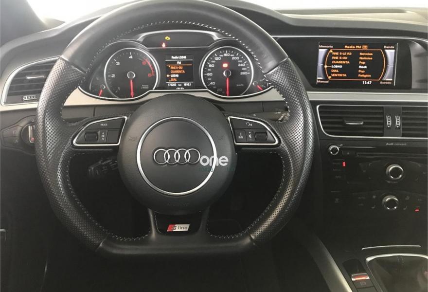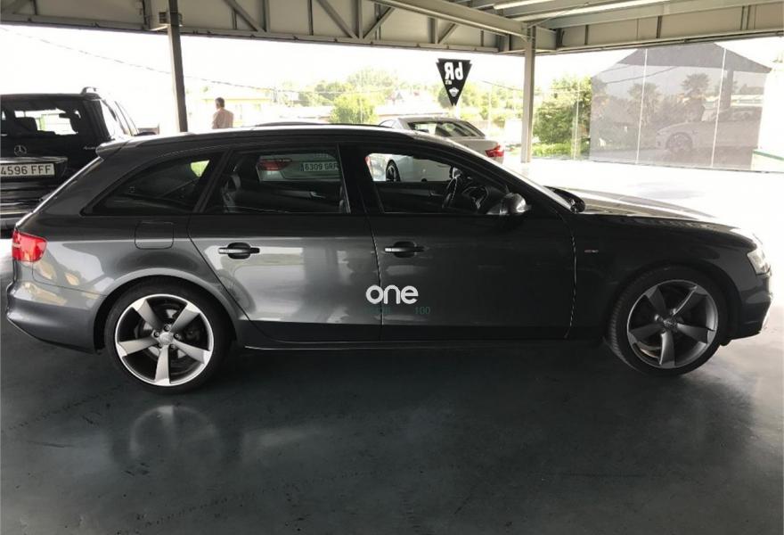 AUDI A4, Diesel, año 2014, 173000 kilómetros, color Gris / Plata (GRIS ANTRACITA) metalizado, precio 16363€. Asientos delanteros calefactables,Asientos delanteros con regulación lumbar eléctrica,Asientos delanteros deportivos,Inserciones en aluminio Trigon,Paquete deportivo S line,Tapicería S line en Alcantara perforada/cuero,Equipo de sonido Bang & Olufsen,Volante deportivo de tres radios multifuncional achatado en parte inferior,Instalación básica manos libres (Bluetooth) para teléfono móvil,Espejos retrovisores exteriores calefactables,Faros de xenón plus con luz de marcha diurna con técnica LED,Lavafaros,Sensor de luz y lluvia,Sistema de alarma antirrobo,Sistema de control de presión de los neumáticos,Techo panorámico de cristal,Barras laterales negras en el techo,Llantas de aleación 8,5Jx19 diseño rotor de 5 brazos en óptica de titanio con neumáticos 255/35 R 19 (Audi exclusive),Pintura metalizada,Suspensión deportiva,Airbags laterales traseros,Control de crucero adaptativo. AUDI A4 AVANT 2.0 TDI 2x S-Line.