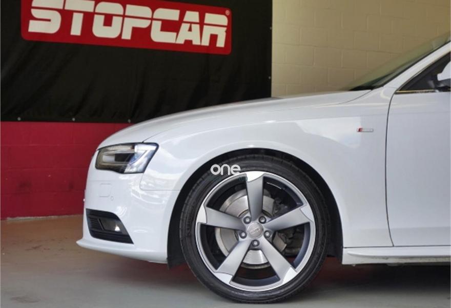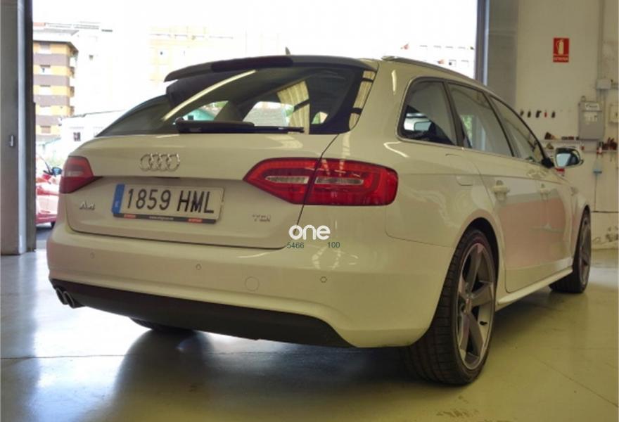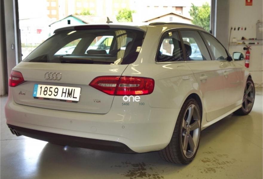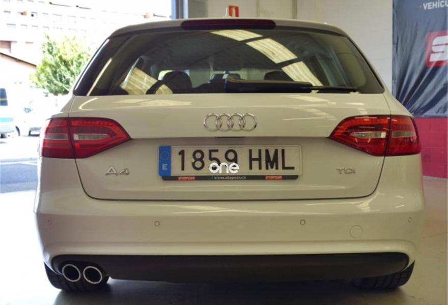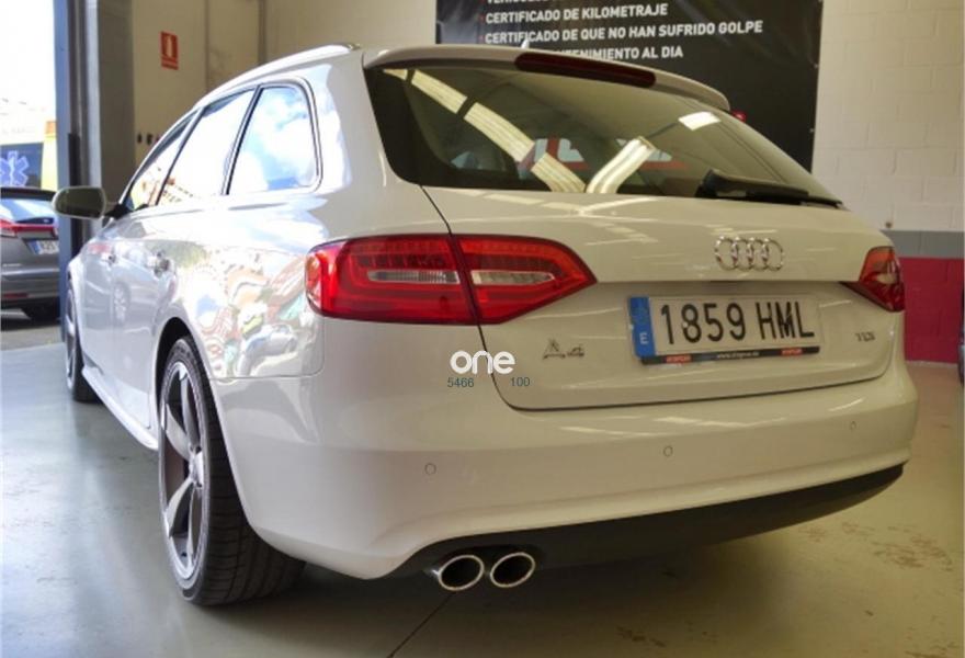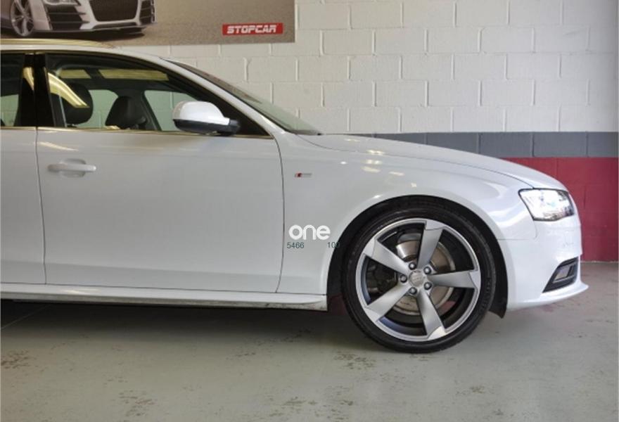 AUDI A4, Diesel, año 2012, 110000 kilómetros, color Blanco metalizado, precio 18900€. Paquete técnico,Asientos delanteros con regulación eléctrica,Asientos delanteros con regulación lumbar eléctrica,Inserciones en aluminio Trigon,Paquete deportivo S line,Tapicería en cuero Milano,Instalación manos libres (Bluetooth) para teléfono móvil y apoyabrazos central delantero,MMI navegación plus,Reposabrazos central delantero,Asistente de luz de carretera "smart beam",Control automático de velocidad (Tempomat),Cuero Milano Negro - Asientos Normales,Espejo retrovisor interior antideslumbrante automático con sensor de luz y lluvia,Espejos retrovisores exteriores antideslumbrantes automáticos, plegables eléctricamente y con función de memoria,Espejos retrovisores exteriores calefactables,Faros de xenón plus con luz de marcha diurna con técnica LED,Lavafaros,Sensor de luz y lluvia,Sistema de alarma antirrobo,Barras laterales en el techo pulidas,Blanco Glaciar (metalizado),Llantas de aleación 8,5Jx19 diseño rotor de 5 brazos en óptica de titanio con neumáticos 255/35 R 19 (Audi exclusive),Pintura efecto perla,Tyre Mobility System,Tornillos de rueda antirrobo,Suspensión deportiva,Airbags laterales traseros,Fijación para tres asientos infantiles ISOFIX y desactivador airbag del acompañante,Parking control plus. Vehiculo nacional con su correspondiente libro de mantenimiento en serivicio oficial AUDI.