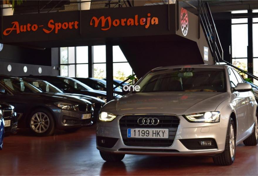 AUDI A4, Diesel, año 2012, 74100 kilómetros, color Gris / Plata (Hielo) metalizado, precio 18900€. Tapicería en cuero Milano,Instalación manos libres (Bluetooth) para teléfono móvil y apoyabrazos central delantero,Reposabrazos central delantero,Control automático de velocidad (Tempomat),Cuero Valcona Bicolor Blanco Alabastro/Negro,Faros de xenón plus con luz de marcha diurna con técnica LED,Lavafaros,Sensor de luz y lluvia,Tela Coseno Negro - Asientos Normales,Pintura metalizada,Plata Hielo (metalizado),Parking control trasero. *Llévatelo por 17.900€, financiando un mínimo de 10.000€ a partir de 72 Meses. Vehículo Nacional de un único propietario. Última Revisión en Taller Autorizado (FIRST STOP) el 27/05/2017 a los 67.681Kms. En el precio se incluye: IVA (Deducible), Transferencia y Garantía de un año. La Certificación de Kilómetros y que no ha sufrido golpes estructurales, queda reflejado en el Contrato. Todos nuestros vehículos disponen de un informe independiente y objetivo. // Abierto 365 días - Financiación sin entrada 327€/Mes - Web: autosportmoraleja.es //