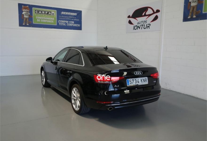 AUDI A4, Diesel, año 2016, 109220 kilómetros, color Negro metalizado, precio 24900€. Audi design selection,Paquete black line,Paquete Técnico,Paquete Visión,Sistema de aviso de límite de velocidad por reconocimiento de señales,Audi hold assist,Airbags laterales traseros,Audi parking system plus,Cámara de visión trasera,Suspensión deportiva,Negro Mitos (metalizado),Llantas de aleación 8 J x 18 Audi Sport diseño de 5 radios Pylon con neumáticos 245 / 40 R 18,Cuero Milano Negro,Faros LED,Lavafaros,Volante de tres radios multifuncional plus (incluye levas de cambio en automáticos),Sistema de alarma antirrobo,Audi Sound system,MMI navegación,Radio digital DAB,Tapicería en cuero Milano,Inserciones en aluminio Trimarán,Asientos delanteros deportivos,Alfombrillas Audi exclusive,Llave de confort con apertura por control gestual. El coche esta en perfecto estado.Tiene 12 MESES DE GARANTIA , libro de revisiones al dia,km garantizados por escrito y certificados.Climatizador bizonal,cambio automático ,navegador,asientos deportivos de cuero negro,faros bi-xenón con luz diurna de led,control de velocidad,drive select,apertura y arranque sin llave,elevalunas eléctricos,espejos eléctricos ,esp,radio cd con entrada auxiliar ,volante multinacional con levas ,ordenador de a bordo,start&stop,apoyabrazo,bluetooth,sensores de aparcamiento,camara video marcha atras. Mejor Verlo.Se acepta prueba mecanica .ACEPTAMOS VEHICULO COMO PARTE DE PAGO. TODOS NUESTROS VEHICULOS SE ENTREGAN TOTALMENTE REVISADOS Y KILOMETROS CERTIFICADOS..