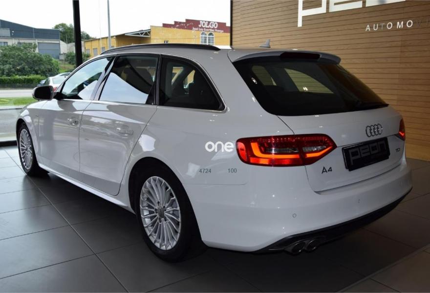 AUDI A4, Diesel, año 2014, 100000 kilómetros, color Blanco , precio 19500€. Cambio automático Multitronic, paquete deportivo S-Line exterior, sistema navegación Plus,faros Bi-Xenón + lavafaros, reposabrazos central delantero,volante deportivo multifunción con levas de cambio,cortinillas en plazas traseras, climatizador automático, espejos exteriores eléctricos y térmicos ,revestimiento interior en aluminio, control de velocidad , sensor luz y lluvia, lector de tarjetas SD, sensores aparcamiento , ISOFIX en plazas traseras, etc,etc.