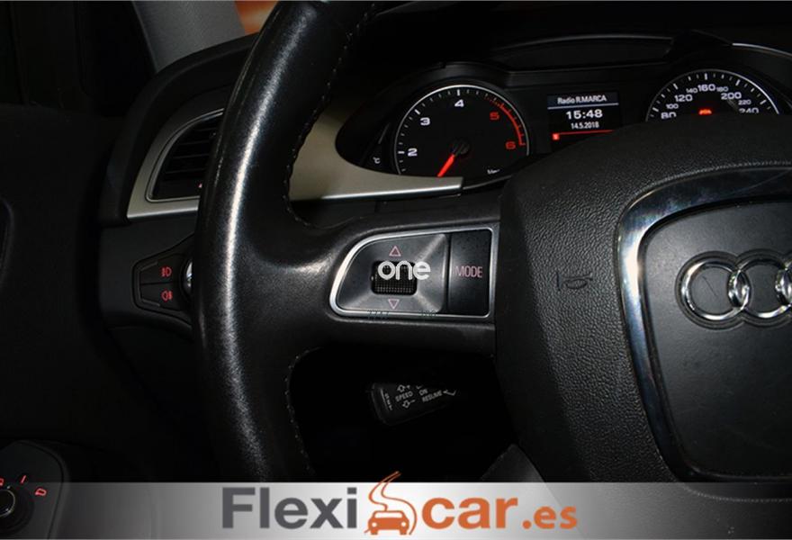 AUDI A4, Diesel, año 2011, 129990 kilómetros, color Gris / Plata metalizado, precio 14490€. Asientos delanteros deportivos,Preinstalación de teléfono móvil con kit manos libres (Bluetooth),Espejos retrovisores exteriores calefactables,Faros de xenón Plus,Lavafaros,Sistema de control de presión de los neumáticos,Tela Atrium Gris Luz - Asientos Deportivos,Gris Monzón (metalizado),Llantas de aleación 7,5Jx17 diseño 7 brazos Parabol con neumáticos 225/50 R 17,Pintura metalizada,Tornillos de rueda antirrobo,Audi parking system APS delantero y trasero,Fijación para tres asientos infantiles ISOFIX y desactivador airbag del acompañante. Vehículo en perfecto estado, equipado con, SENSORES DE APARCAMIENTO, elevalunas y retrovisores eléctricos, volante multifunción, dirección asistida, sensor de luces y lluvia, ordenador de abordo, control de velocidad, Audi music interface, Reposabrazos central delantero, manos libres (Bluetooth), climatizador BIZONA, freno de mano eléctrico, cierre centralizado, radio CD con tarjeta SD, retrovisor interior antideslumbrante, llantas de aleación, faros antiniebla, luces diurnas led...Ejemplo de financiación dando 4490€ de entrada y financiando 10.000€ a 48 meses. Para otras condiciones consulte con su comercial.Financiación a su medida. ACEPTAMOS COCHE COMO FORMA DE PAGO. Garantía Flexicar (consultar). Este anuncio no es vinculante, puede contener errores, se muestra a titulo informativo y no contractual..