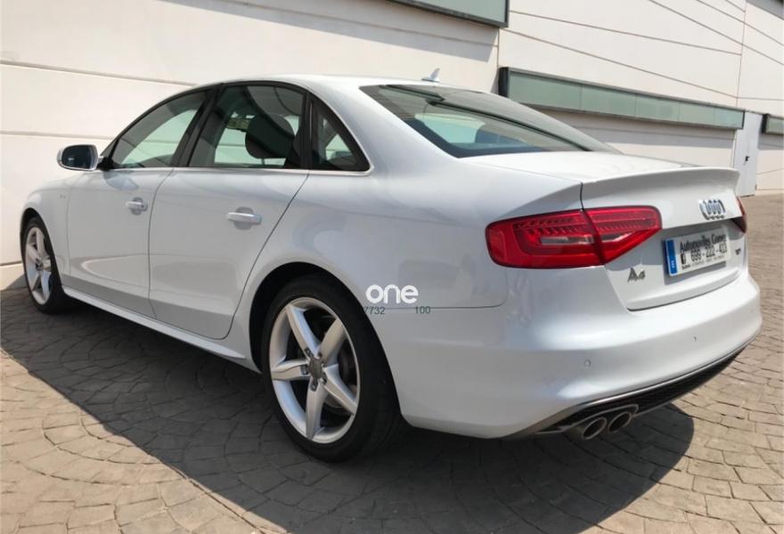 AUDI A4, Diesel, año 2015, 79000 kilómetros, color Blanco , precio 18990€. Paquete de Asistencia,Asientos delanteros con regulación eléctrica,Asiento del conductor con regulación eléctrica,Asientos delanteros con regulación lumbar eléctrica,Paquete deportivo S line,MMI navegación plus,MMI navegación,Instalación básica manos libres (Bluetooth) para teléfono móvil,Instalación manos libres (Bluetooth) para teléfono móvil,Equipo de sonido Audi,Control automático de velocidad (Tempomat),Climatizador de confort de tres zonas,Espejo retrovisor interior antideslumbrante automático con sensor de luz y lluvia,Espejos retrovisores exteriores antideslumbrantes automáticos y plegables eléctricamente,Faros de xenón plus con luz de marcha diurna con técnica LED,Faros inteligentes "smart beam",Lavafaros,Sensor de luz y lluvia. Audi a4 (o) 2. 0 tdi 150cv s line edition// equipamiento de serie: navegación// sensores de aparcamiento// sensores de luces y lluvia// control de crucero y limitados// ordenador a bordo// luces diurnas led// frenó eléctrico// suspensión deportiva// ( oferta sujeta a financiación) se acepta prueba mecánica en concesionario oficial, libro de revisiones, //kilómetros certificados por escrito// un solo propietario, posibilidad de financiación 100% sin entrada //transferencia y garantía 1 año nacional incluido en el precio // abrimos de lunes a sábados de 09: 00 am a 21: 00 pm ??¿dònde estamos? crta. badajoz km 27, 7 (junto a explanada del hotel heredero) 06100 olivenza (badajoz). .