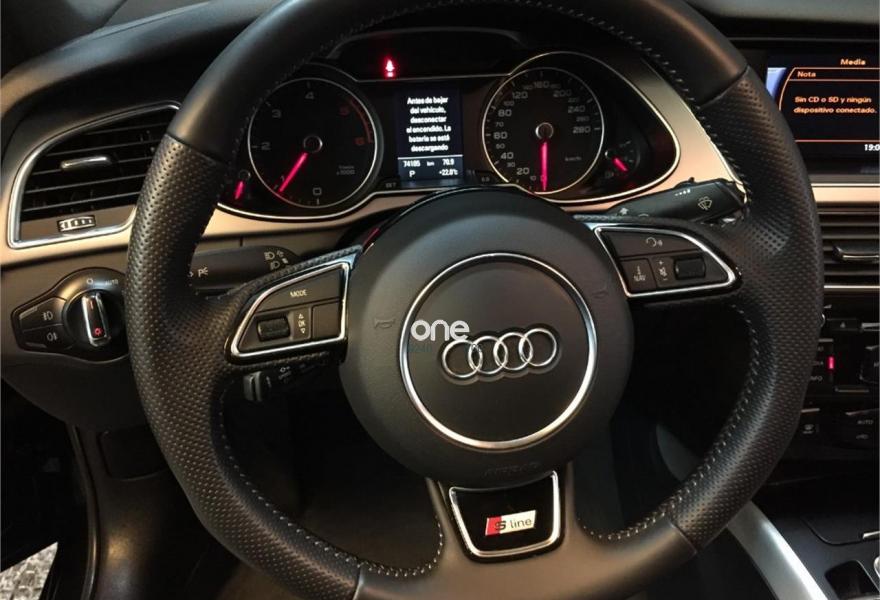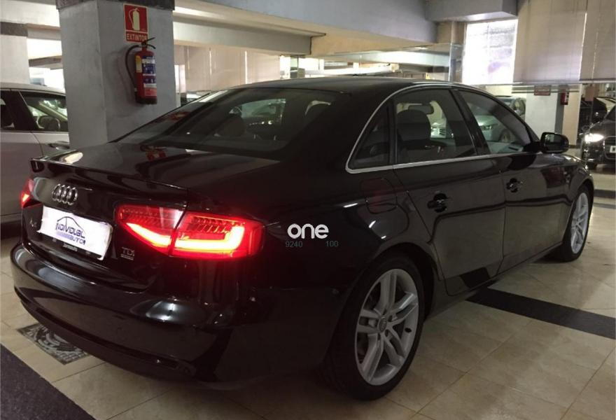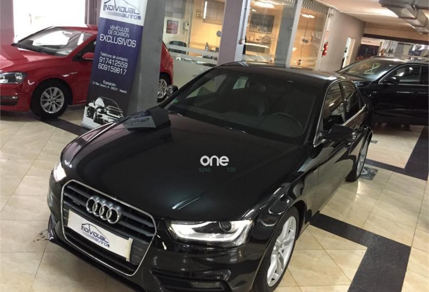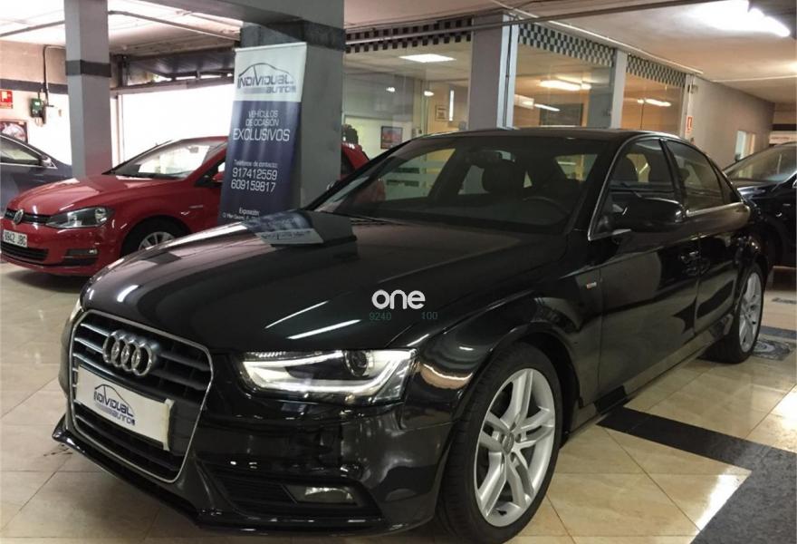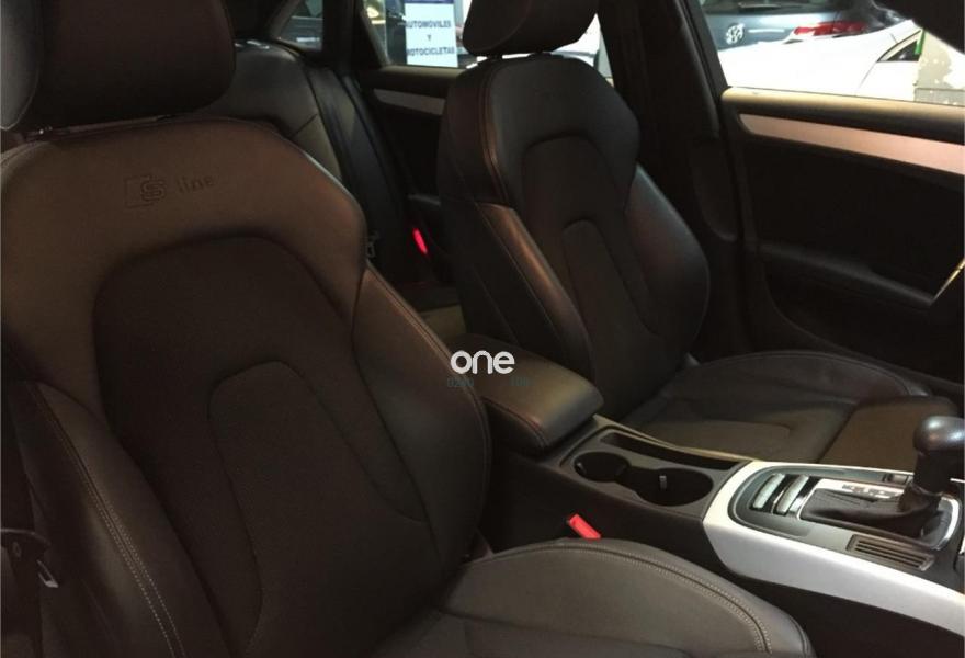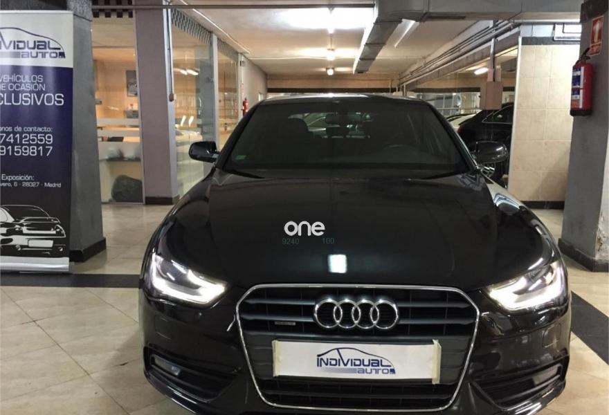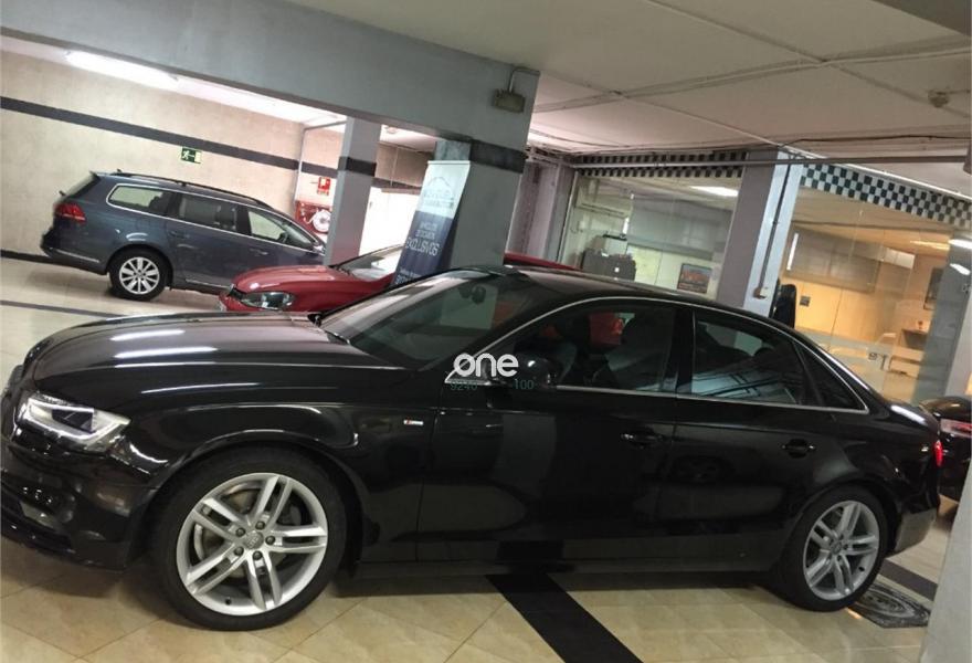 AUDI A4, Diesel, año 2013, 74100 kilómetros, color Negro metalizado, precio 18600€. Audi exclusive edition,Paquete business,Asientos delanteros deportivos S,Paquete deportivo S line,Tapicería S line en tela Sprint/cuero,Audi music interface,Instalación manos libres (Bluetooth) para teléfono móvil,Reposabrazos central delantero,Teléfono Audi Bluetooth GSM con auricular inalámbrico y apoyabrazos central delantero,Radio digital DAB,Paquete maletero,Audi exclusive line,Climatizador de confort de tres zonas,Luz adaptativa "dynamic adactative light",Sensor de luz y lluvia,Tela Sprint/Cuero Negro (costuras en plata),Llantas de aleación 8Jx18 diseño 5 brazos con neumáticos 245/40 R 18 (Audi exclusive),Negro Brillante,Suspensión deportiva S line,Airbags laterales traseros,Parking control plus. NACIONAL 1 PROPIETARIO CON LIBRO DE MANTENIMIENTO.