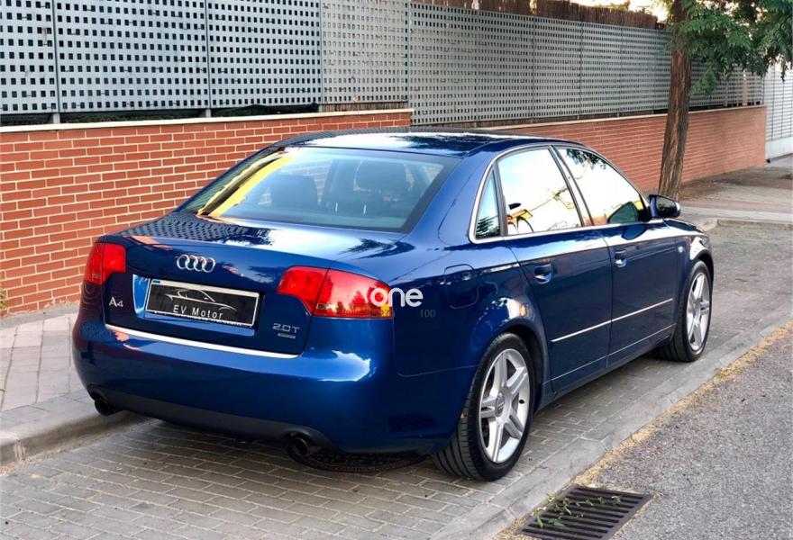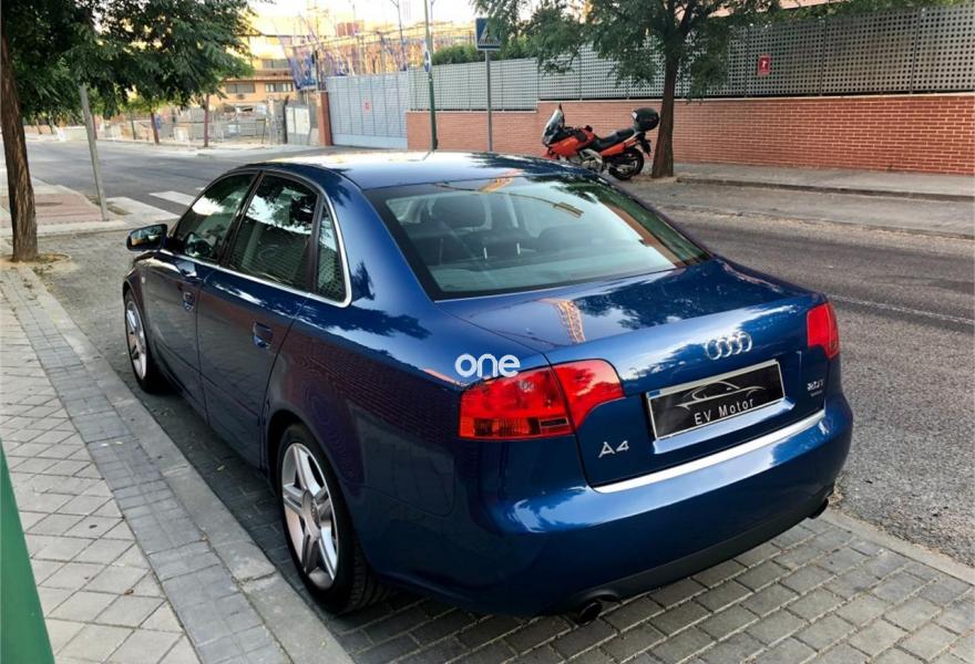 AUDI A4, Gasolina, año 2006, 96500 kilómetros, color Azul metalizado, precio 9000€. Faros de xenón Plus,Volante deportivo de tres radios multif.,Llantas aleación 7,5Jx17 5 brazos dobles,Sistema nformación FIS pantalla color. Impecable estado, kilómetros garantizados, un solo propietario, revisiones al día, tracción a las 4 ruedas, faros de xenon, climatizador bizona, volante multifuncional, bluetooth, neumáticos nuevos. Transferencia por cuenta del comprador. .