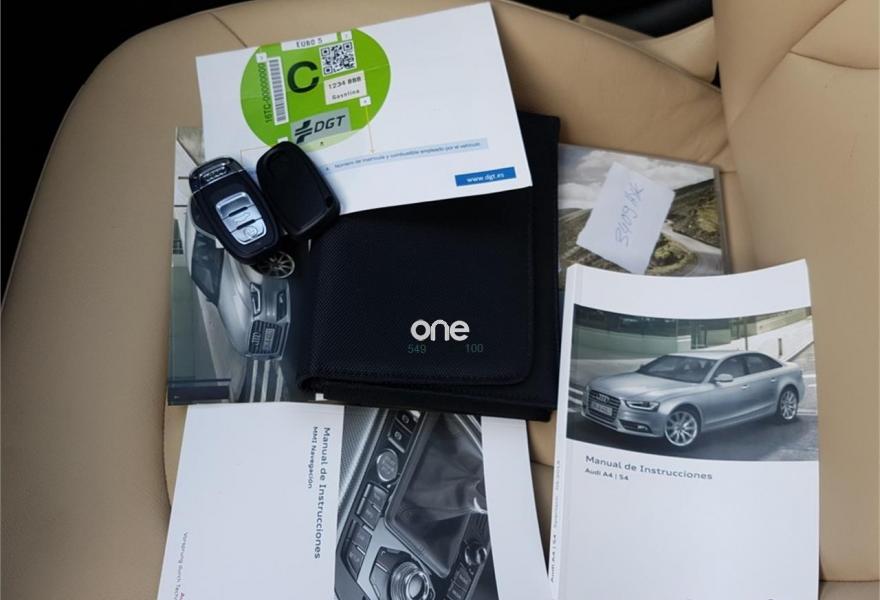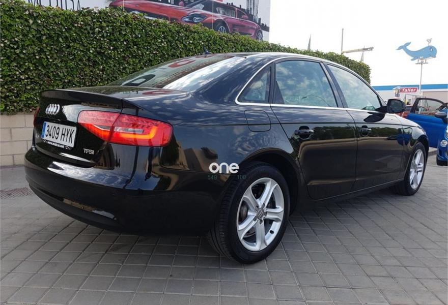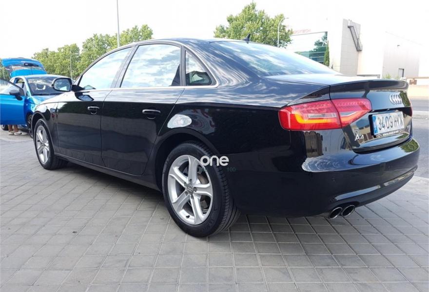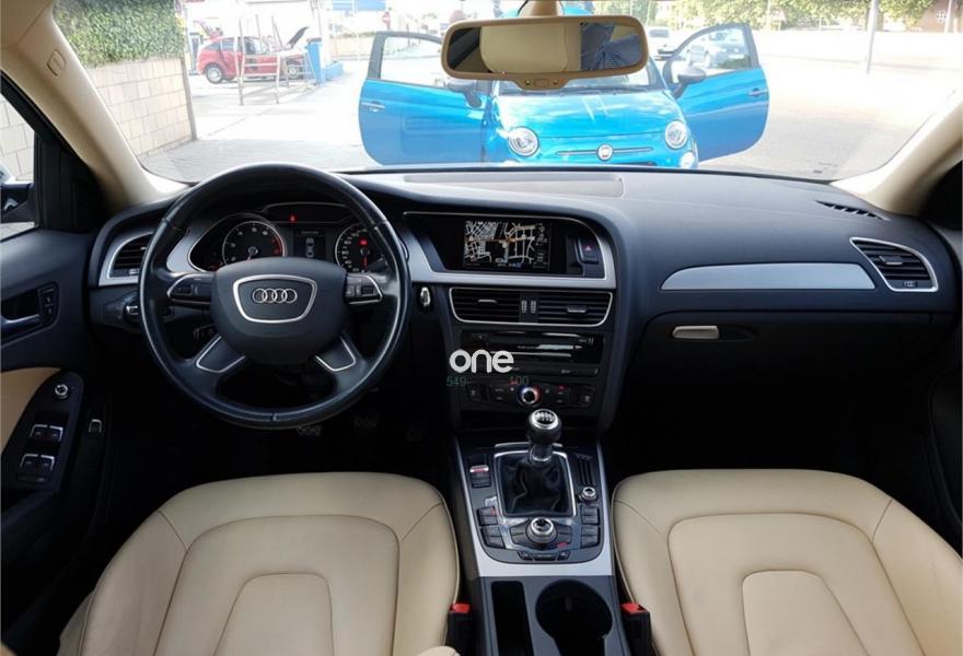 AUDI A4, Gasolina, año 2014, 100000 kilómetros, color Negro metalizado, precio 18750€. Paquete técnico,Tapicería en cuero Milano,Equipo de sonido Audi,MMI navegación plus,Reposabrazos central delantero,Asistente de luz de carretera "smart beam",Control automático de velocidad (Tempomat),Espejos retrovisores exteriores calefactables,Faros de xenón plus con luz de marcha diurna con técnica LED,Lavafaros,Paquete cuero,Sensor de luz y lluvia,Sistema de control de presión de los neumáticos,Negro Phantom (efecto perla),Fijación para tres asientos infantiles ISOFIX y desactivador airbag del acompañante,Parking control trasero. Audi A4 1.8TFSI 120Cv, 6 Velocidades, Año 2014, 108000Km, Libro de revisiones al día, Faros de xenón plus con luz de marcha diurna con técnica LED, Navegador GPS, Asientos cuero Milano, Dirección asistida variable Servotronic, Control de crucero, Start&Stop, Sensores de luz, lluvia, Climatizador bi-zona, Retrovisores eléctricos , Volante en cuero con mandos, 4 elevalunas eléctricas, Sensores de aparcamiento, Asientos traseros compartidos con Isofix, Faros inteligentes "smart beam", Paquete business, Paquete técnico, Sensor de luz y lluvia, Equipo sonido Audi, Llantas de aleación 7,5Jx17 diseño 5 brazos con neumáticos 225/50 R 17, Apoyabrazos central delantero y trasero,
