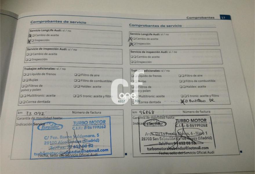 Cambio automático con función secuencial, Freno de mano eléctrico, Llantas de aleación 16", Bluetooth, Climatizador digital, Ordenador de abordo, Reposabrazos central, Volante multifunción, Audi Concert, ESP, Elevalunas Eléctricos, Cierre Centralizado, Retrovisores eléctricos.