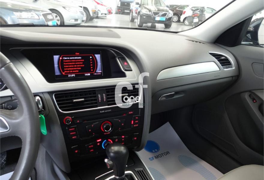 AUDI A4, Diesel, año 2010, 129000 kilómetros, color Negro metalizado, precio 17200€. Paquete confort (cuero Valcona),Tapicería en cuero Valcona,Audi music interface,Equipo de sonido Audi,Instalación básica manos libres (Bluetooth) para teléfono móvil,Preinstalación de teléfono móvil con kit manos libres (Bluetooth),Reposabrazos central delantero,Cuero Valcona Beige Luxor - Asientos Normales,Paquete cuero,Pintura metalizada,Negro Phantom (efecto perla),Pintura efecto perla,Volante cuatro radios multifuncional multitronic/tiptronic. ACEPTAMOS COCHE COMO PARTE DE PAGO. IVA DEDUCIBLE INCLUIDO EN EL PRECIO, Transferencia y Garantía Total de 1 año incluido en el precio. Matriculación Abril 2010. Kilómetros certificados por escrito con libro de mantenimiento. Audi A4 2.0 TDI 143cv Multitronic DPF.