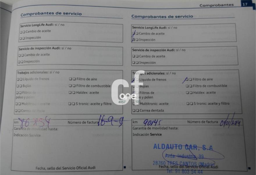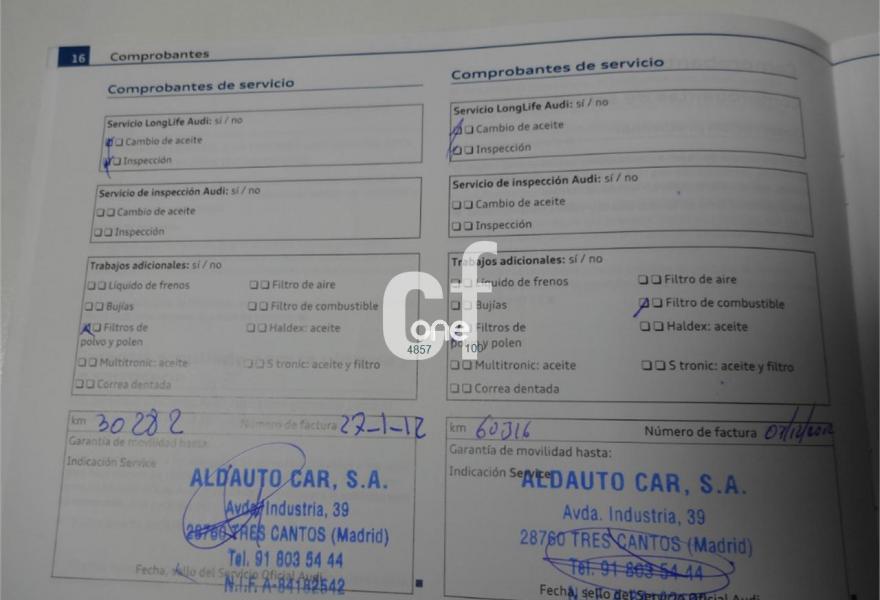 Llantas aleación (225/55/16"), Freno de mano eléctrico, Climatizador, Radio CD Mp3, Volante multifunción, Ordenes Vocales, Bluetooth, Ordenador de abordo, Audi Concert Audio, Libro de mantenimiento sellado en casa oficial, Sensor de luz, Antinieblas, Cierre Centralizado, Elevalunas Eléctricos, Retrovisores Eléctricos, Pantalla frontal con control de Climatización, Audio Media, Bluetooth, y configuración del vehículo.