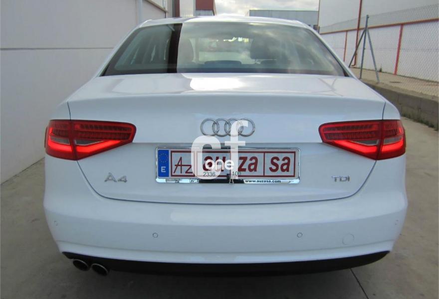 AUDI A4, Diesel, año 2014, 50000 kilómetros, color Blanco metalizado, precio 19400€. Paquete técnico,Inserciones interiores en aluminio mate cepillado,Paquete portaobjetos,Equipo de sonido Audi,Instalación manos libres (Bluetooth) para teléfono móvil,Radio Simphony,Reposabrazos central delantero,Teléfono Audi Bluetooth GSM con auricular inalámbrico y apoyabrazos central delantero,Asiento trasero abatible asimétricamente,Control automático de velocidad (Tempomat),Espejo retrovisor interior antideslumbrante automático con sensor de luz y lluvia,Faros de xenón plus con luz de marcha diurna con técnica LED,Lavafaros,Luz adaptativa "dynamic adactative light",Sensor de luz y lluvia,Llantas de aleación 7,5Jx17 diseño 5 brazos con neumáticos 225/50 R 17,Pintura metalizada,Fijación para tres asientos infantiles ISOFIX y desactivador airbag del acompañante,Parking control trasero. TOTALMENTE NUEVO.