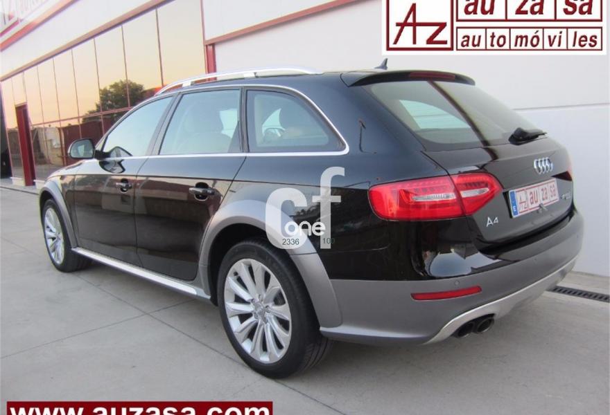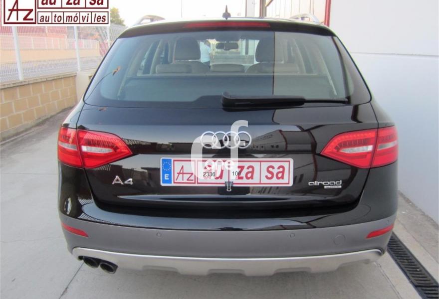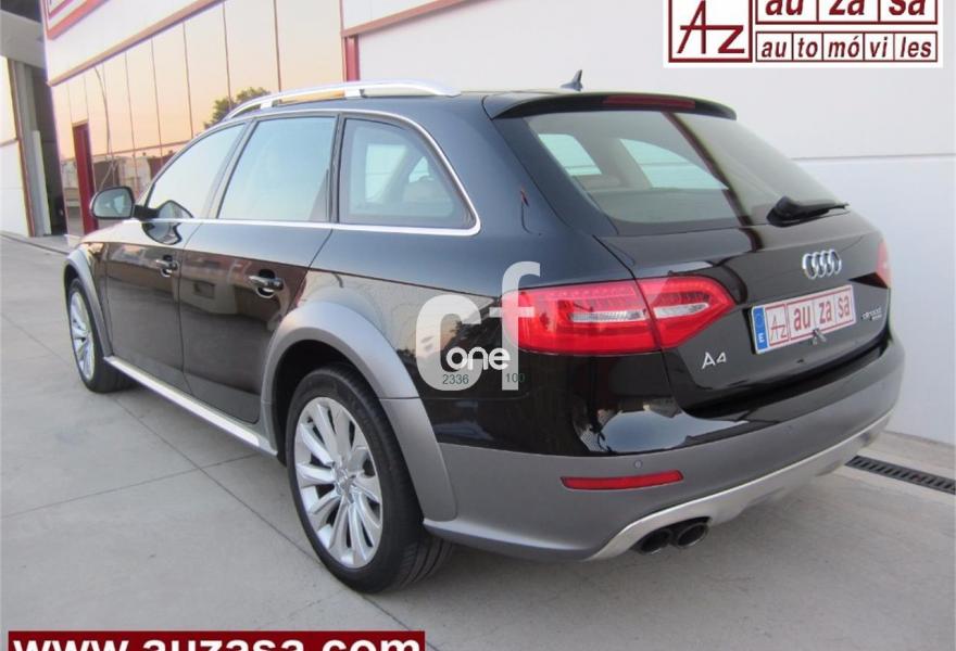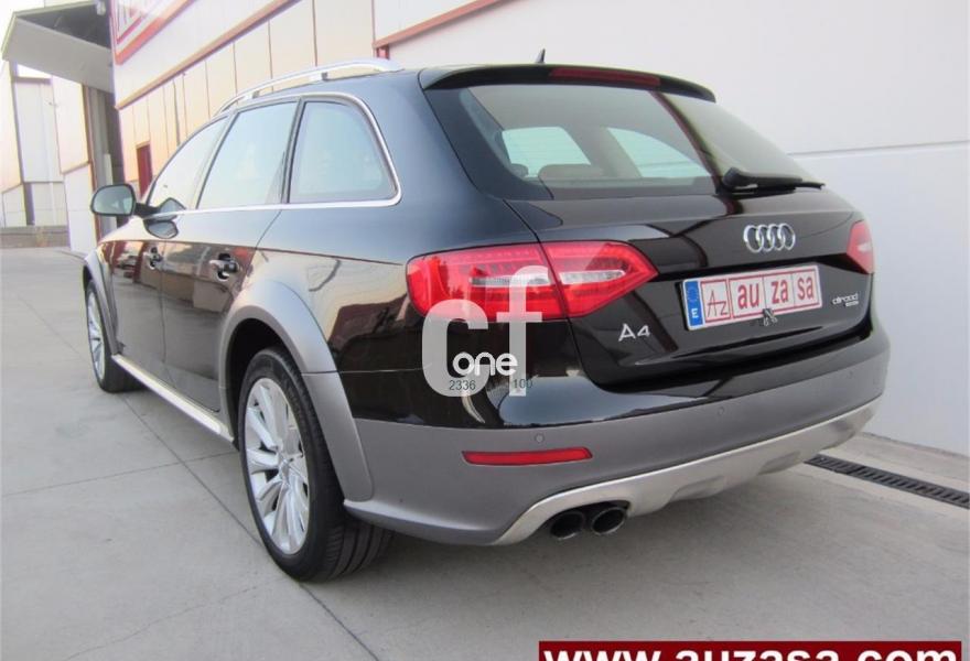 AUDI A4 Allroad Quattro, Diesel, año 2013, 129000 kilómetros, color Negro metalizado, precio 21900€. Paquete business,Paquete técnico,Moqueta del piso en color Audi exclusive,Paquete portaobjetos,Tapicería en cuero Milano,Audi music interface,Equipo de sonido Audi,Instalación básica manos libres (Bluetooth) para teléfono móvil,MMI navegación,Reposabrazos central delantero,Teléfono Audi Bluetooth GSM,Sistema MMI Navigation plus,Asistente de luces de carretera "smart beam",Climatizador de confort de tres zonas,Control automático de la velocidad (Tempomat),Cortinilla enrollable manual en ventanillas de las puertas traseras,Cuero Milano Beige cardamomo - Asientos Normales o Deportivos (Moqueta Velours),Espejo retrovisor interior antideslumbrante automático,Espejos retrovisores exteriores antideslumbrantes automáticos y plegables eléctricamente,Espejos retrovisores exteriores calefactables,Espejos retrovisores exteriores plegables eléctricamente,Faros de xenón Plus,Instalación de teléfono móvil con kit manos libres (Bluetooth),Paquete cuero,Sensor de luces y lluvia,Sistema de alarma antirrobo,Sistema de control de presión de los neumáticos,Volante deportivo de tres radios multifuncional achatado en parte inferior,Llantas de aleación 8Jx18 diseño de 10 radios con neumáticos 245/45 R18,Pintura metalizada,Volante deportivo de tres radios multifuncional con levas de cambio achatado en parte inferior,Audi hold assist,Audi parking system advanced,Audi parking system APS delantero y trasero,Fijación para asientos infantiles ISOFIX y desactivador del airbag del acompañante. Vehículo procedente directamente de Concesionario Oficial AUDI ESPAÑA, único titular anterior del mismo.