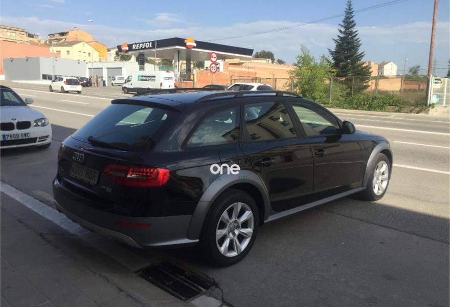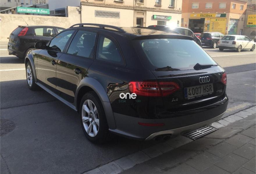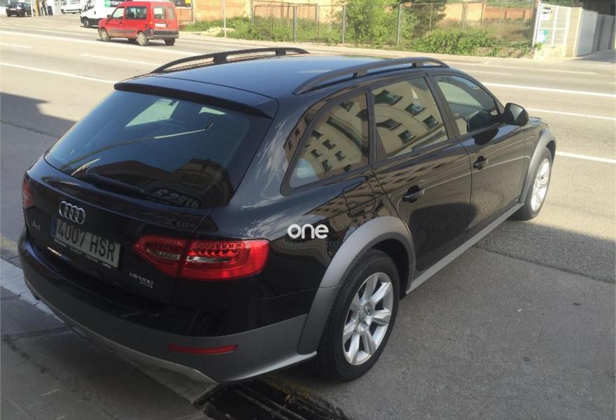 AUDI A4 Allroad Quattro, Diesel, año 2013, 86000 kilómetros, color Negro metalizado, precio 21500€. Inserciones en aluminio Trigón,Reposabrazos central delantero,Espejo retrovisor interior antideslumbrante automático,Control automático de la velocidad (Tempomat),Faros de xenón Plus,Sensor de luces y lluvia,Negro Brillante,Pintura metalizada,Audi parking system APS trasero. AUDI A4 ALLROAD QUATTRO IMPECABLE!!! Nacional, libro mantenimiento, como nuevo. Faros Xenón Plus, climatizador bizona, volante multifunción. Sensor de aparcamiento posterior, ordenador de abordo, función Start/Stop. Retrovisor interior antideslumbrante. Sensor de luces y lluvia, control de velocidad de crucero, reposabrazos central delantero. Llantas de aleación de 17", Bluetooth. Incluye 12 meses de garantía. Transferencia no incluida. Oferta sujeta a la financiación del vehiculo de un mínimo de 15.000€ en 60 meses. Precio sin financiación: 23.750€.