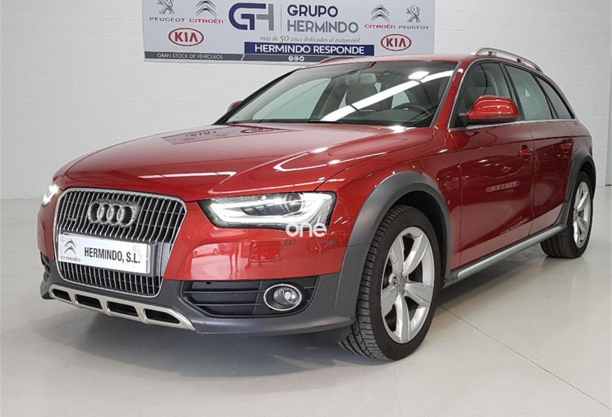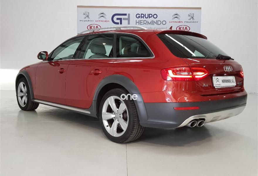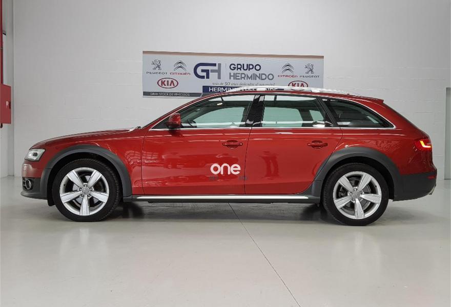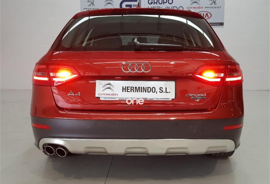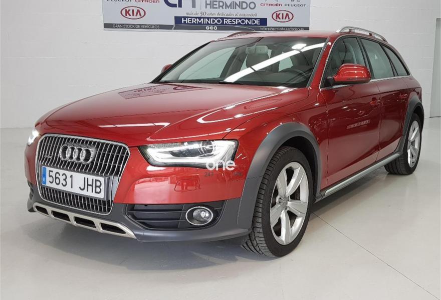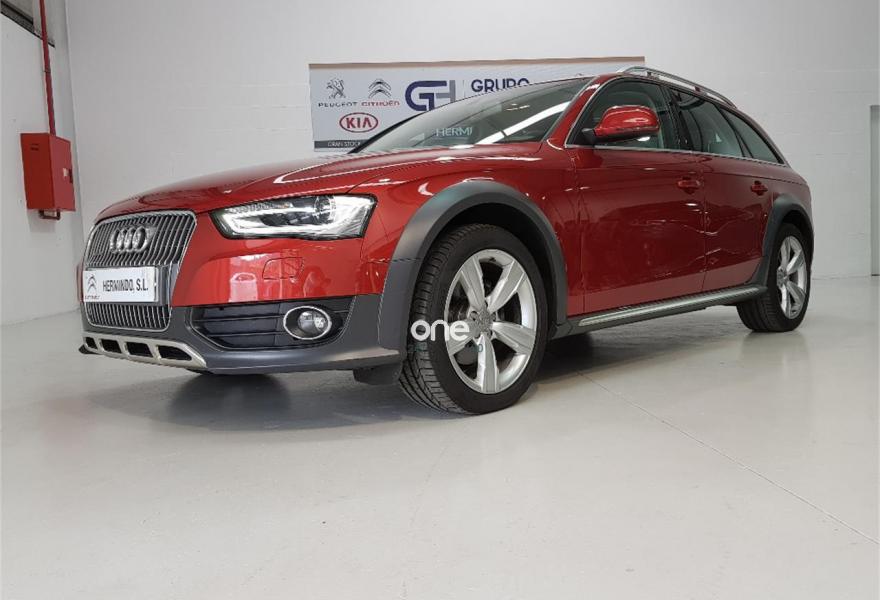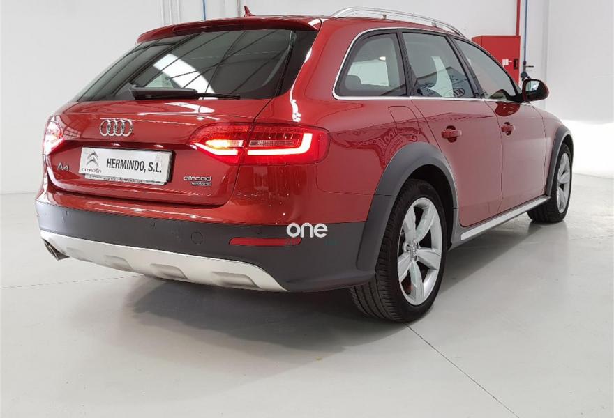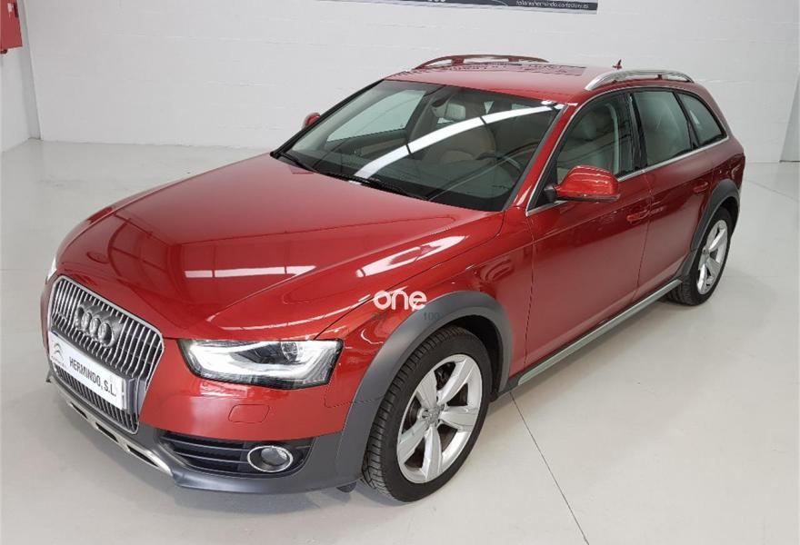 AUDI A4 Allroad Quattro, Diesel, año 2015, 48750 kilómetros, color Rojo metalizado, precio 28500€. Paquete business,Pomo palanca de cambio manual en aluminio,Instalación básica manos libres (Bluetooth) para teléfono móvil,MMI navegación plus,Radio digital DAB,Volante deportivo de tres radios multifuncional,Asistente de luces de carretera "smart beam",Control automático de la velocidad (Tempomat),Espejo retrovisor interior antideslumbrante automático,Instalación manos libres (Bluetooth) para teléfono móvil,Sensor de luces y lluvia,Tela Tundra Gris Titán,Llantas de aleación 8 J x 18 diseño de 5 brazos "rotor"con neumáticos 245/45 R18,Rojo Volcán (metalizado),Pintura metalizada,Audi parking system APS trasero,Control de crucero adaptativo,Fijación para asientos infantiles ISOFIX y desactivador del airbag del acompañante,Airbags laterales traseros. GRUPO HERMINDO SL