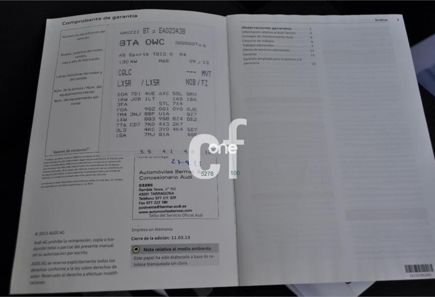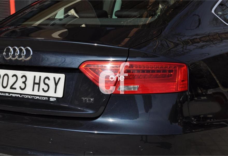 AUDI A5, Diesel, año 2013, 98000 kilómetros, color Azul metalizado, precio 23900€. Tapicería en tela Atrium,Audi Music interface,Instalación básica manos libres (Bluetooth) para teléfono móvil,Audi Sound System,Espejos retrovisores exteriores calefactables antideslumbrantes automáticamente, abatilbles eléctricamente y con función memoria,Faros de xenón Plus,Faros inteligentes "smart beam",Lavafaros,Luz adaptativa "dynamic adaptive light",MMI navegación plus,Paquete deportivo S line,Paquete exterior S line,Preinstalación de teléfono móvil con kit manos libres (Bluetooth) en apoyabrazos delantero,Volante de cuatro radios multifuncional,Azul Scuba (metalizado),Espejos retrovisores exteriores calefactables antideslumbrantes automáticamente y abatilbles eléctricamente,Suspensión deportiva S line,Audi parking system advanced,Fijación para tres asientos infantiles ISOFIX y desactivador airbag del acompañante,Asientos delanteros deportivos diseño "S",Banqueta trasera de tres plazas. AUDI A5 2.0 TDI S-LINE 150CV. AÑO 2013/09. 5 PLAZAS. LIBRO DE MANTENIMIENTO AL DÍA, GARANTÍA 12 MESES. NACIONAL