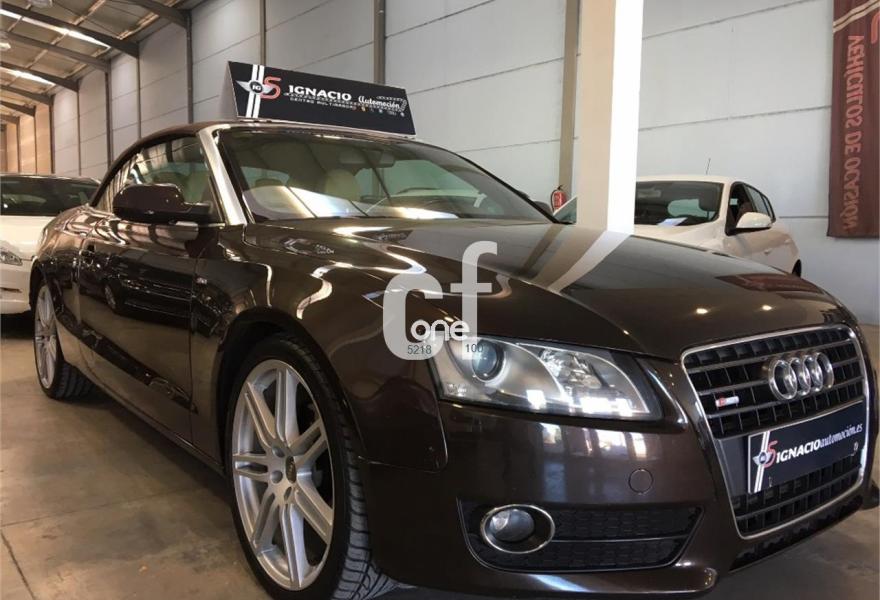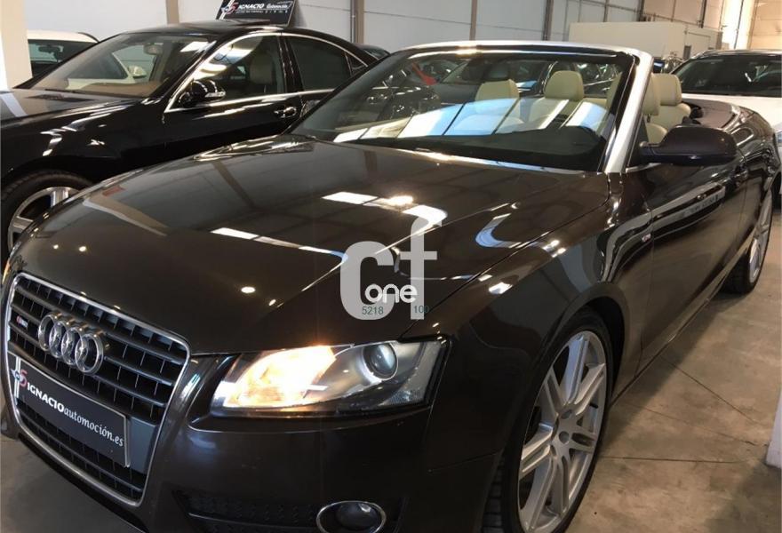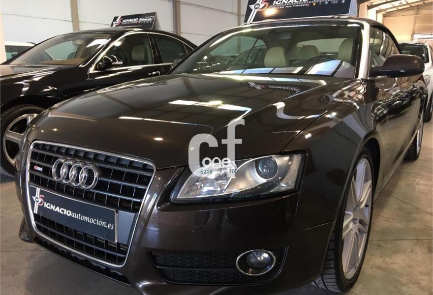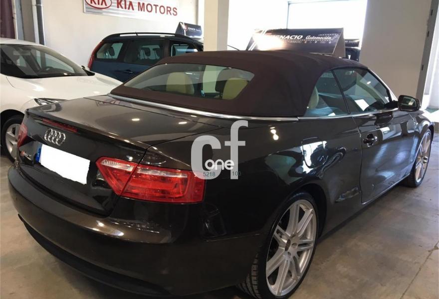 AUDI A5, Diesel, año 2011, 120000 kilómetros, color Marrón metalizado, precio 23900€. Tapicería S line en cuero Milano,Capota Marrón,Paquete deportivo S line,Paquete exterior S line,Volante multifunción S line,Espejos retrovisores exteriores calefactables y abatibles eléctricamente,Marrón Teca (metalizado),Audi parking system trasero. PRECIOSO AUDI A5 CABRIO 2.0 TDI 170 S-LINE MUY EQUIPADO COMPLETAMENTE NUEVO A REESTRENO TAPICERIA DE CUERO BEIGE SLINE CLIMA LLANTAS SLINE 19 SENSORES DE PARKING BLUETOOTH ETC...VEHICULO CON TODO EL MANTENIMIENTO AL DIA.**PRECIO CON UN AÑO DE GARANTIA COMPLETA EN TODA ESPAÑA Y CAMBIO DE NOMBRE INCLUIDO**FINANCIACION A SU MEDIDA*RECOJEMOS SU VEHICULO COMO PARTE DE PAGO**.