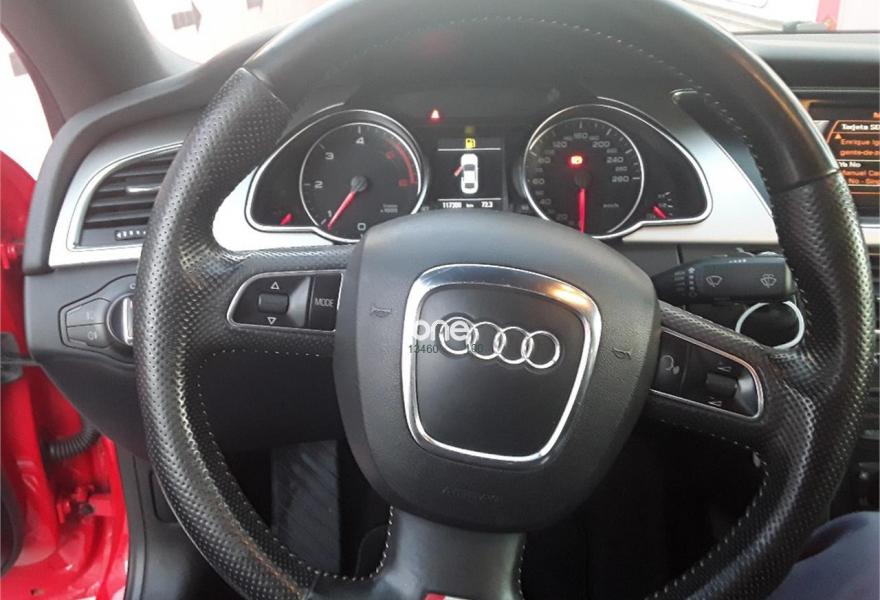 AUDI A5, Diesel, año 2011, 117000 kilómetros, color Rojo metalizado, precio 16900€. Paquete técnico,Asientos delanteros deportivos diseño "S",Asientos delanteros deportivos,Tapicería S line en Alcantara/cuero,Audi Sound System,Alcantara/Cuero Negro,Audi exclusive line,Espejos retrovisores exteriores calefactables antideslumbrantes automáticamente, abatilbles eléctricamente y con función memoria,Paquete exterior S line,Paquete deportivo S line,LLantas de aleación 8,5Jx18 diseño de 10 brazos en V con neumáticos 245/40 R 18,Pintura efecto perla. VEHICULO PROCEDENTE DE PARTICULAR,CERTIFICACION DE KILOMETRAJE,MODELO S LINE,MODELO S LINE,ASIENTOS DE CUERO Y ALCANTARA DEPORTIVOS S LINE CON MASAJE LUMBAR,CLIMATIZADOR AUTOMATICO,LLANTAS DE ALEACION DEPORTUVAS 18 PULGADAS,SENSOR DE LLUVIA,SENSOR DE LUCES,FAROS ANTINIEBLAS,VOLANTE DEPORTIVO S LINE,LO ENTREGAMOS CON 12 MESES DE GARANTIA,12 MESES DE GARANTIA.