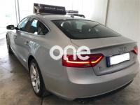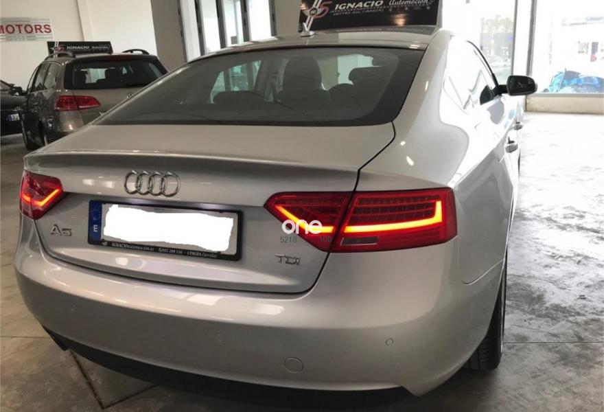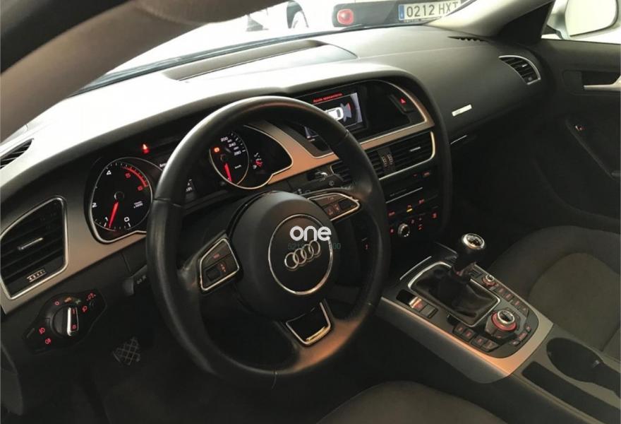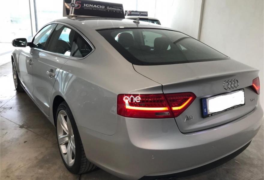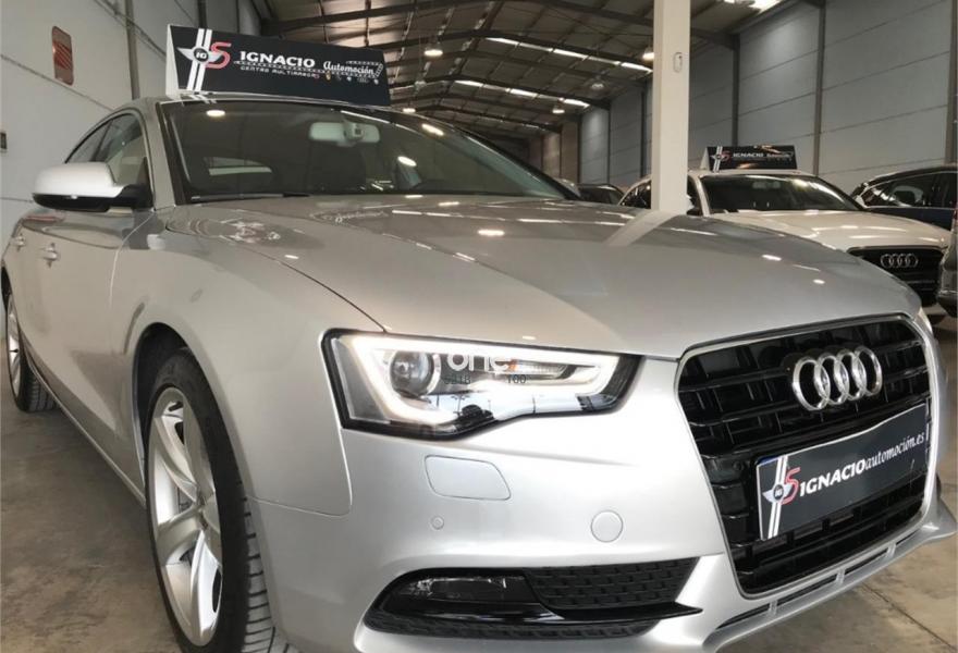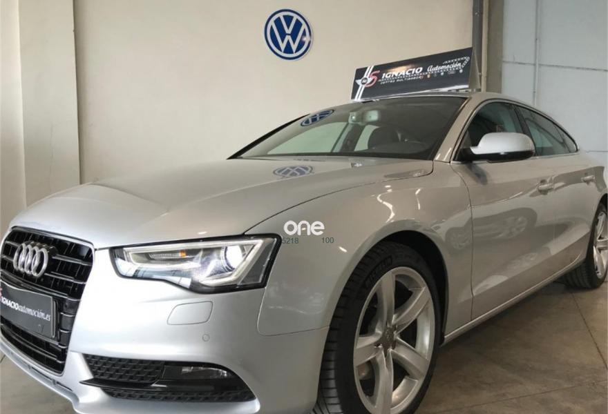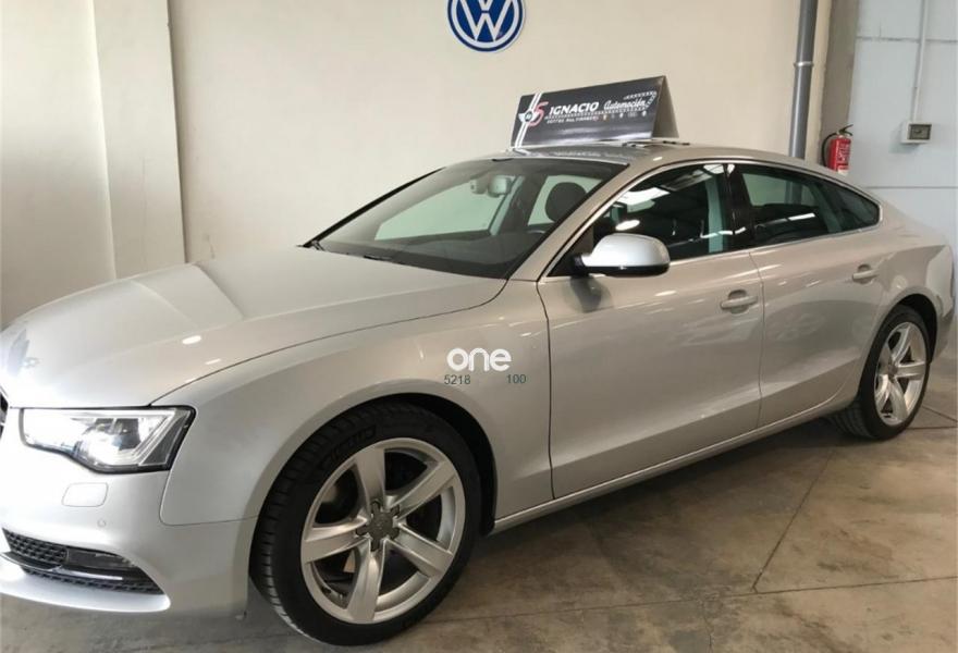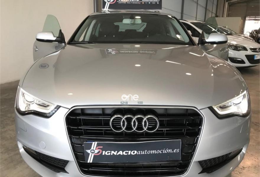 AUDI A5, Diesel, año 2014, 128000 kilómetros, color Gris / Plata metalizado, precio 20900€. MMI navegación plus,Banqueta trasera de tres plazas,Luz adaptativa "dynamic adaptive light",Tela Arcade Negro - Asientos Normales,Volante deportivo de tres radios multifuncional achatado en la parte inferior,Gancho de remolque con bola desmontable,Llantas de aleación 8,5Jx18 diseño de 5 radios en "V" con neumáticos 245/40 R 18,Pintura efecto perla,Audi parking system advanced,Control de crucero adaptativo,Fijación para tres asientos infantiles ISOFIX y desactivador airbag del acompañante. AUDI A5 SPORTBACK 2.0TDI 150 ADVANCE EDITION