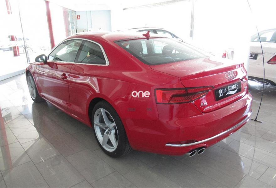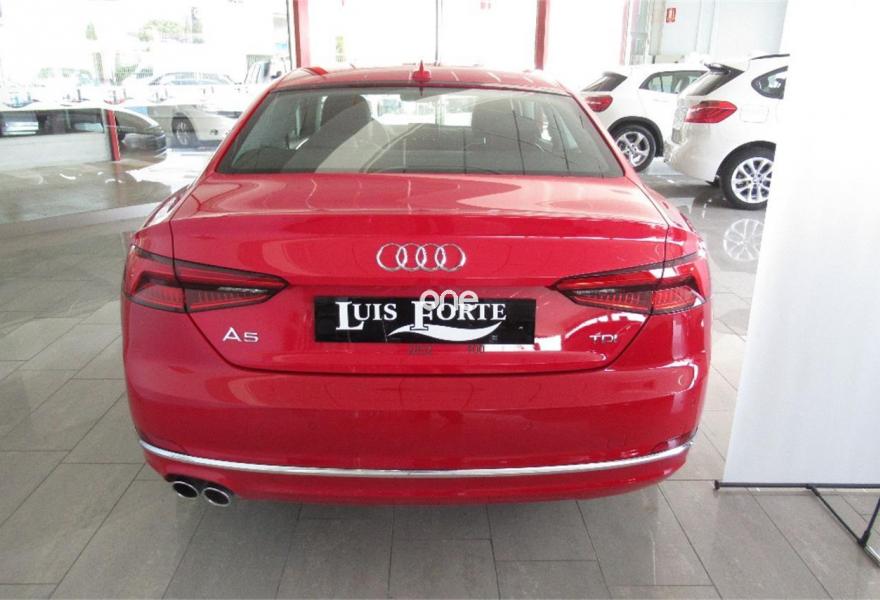 AUDI A5, Diesel, año 2016, 8700 kilómetros, color Rojo , precio 34900€. Sistema de aviso de límite de velocidad por reconocimiento de señales,Asientos delanteros con regulación lumbar eléctrica,Inserciones en aluminio Elipse,Tapicería en Alcantara/cuero,MMI navegación plus,Radio digital DAB,Volante deportivo de tres radios multifuncional achatado en la parte inferior,Alcantara/Cuero Gris Roca - Salpicadero Gris,Climatizador de confort de 3 zonas,Dirección dinámica "dynamic steering",Faros Matrix LED,Paquete deportivo S line,Pintura metalizada,Rojo Tango (metalizado),Llantas de aleación 8,5Jx18 diseño de 5 radios segmentados con neumáticos 245/40 R18,Audi hold assist,Paquete de asistentes de aparcamiento. Audi A5 Coupé con motor 2.0 TDI de 190 CV y cambio automático S-Tronic. El nuevo A5 se deriva en un espectacular vehículo, con una exquisita línea que supera a la de sus competidores, gracias a una imponente parrilla delantera que demuestra agresividad y finura. Por otro lado, una nueva evolución del motor TDI impulsa a este coche hasta su velocidad máxima con un consumo realmente bajo.