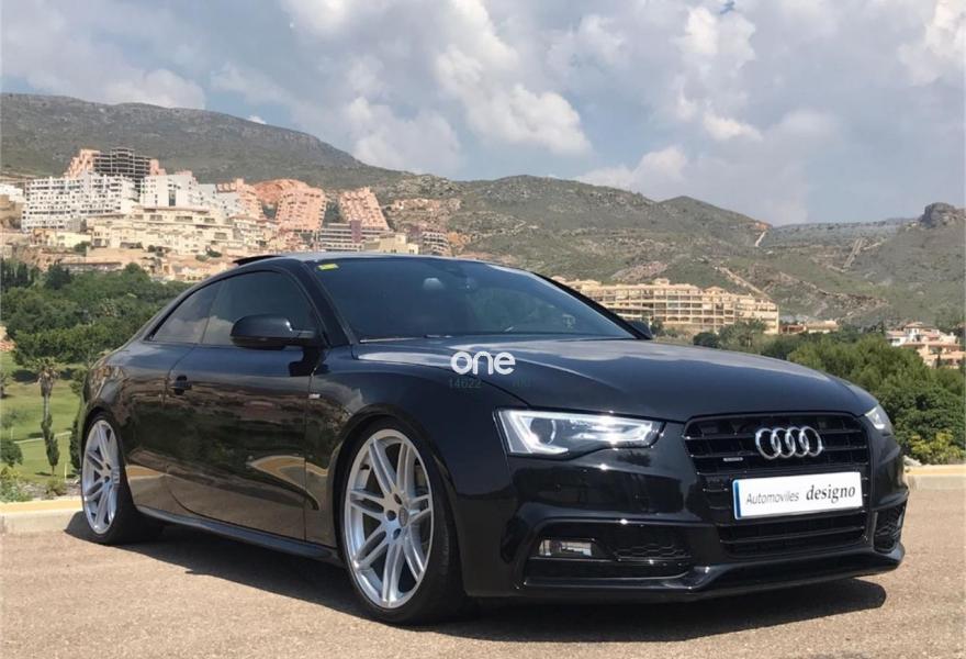 AUDI A5, Diesel, año 2013, 119000 kilómetros, color Negro metalizado, precio 27999€. Audi drive select,Audi exclusive edition,Audi side assist + Audi lane assist,Paquete confort con cuero Milano,Paquete de Asistencia,Paquete técnico,Alfombrillas Audi exclusive en colores especiales,Asientos delanteros calefactables,Asientos delanteros con regulación eléctrica,Asientos delanteros deportivos diseño "S",Inserciones en aluminio cepillado gris,Tapicería en cuero Milano,Audi Music interface,Equipo de sonido Bang & Olufsen,Instalación básica manos libres (Bluetooth) para teléfono móvil,Paquete maletero,Aro de volante en cuero Audi exclusive,Audi exclusive line,Cuero Milano Gris Titán,Cuero Milano Negro,Cuero Napa Fina Negro - Asientos Deportivos S,Dirección dinámica "dynamic steering",Espejo retrovisor interior antideslumbrante,Espejos retrovisores exteriores calefactables antideslumbrantes automáticamente, abatilbles eléctricamente y con función memoria,Faros de xenón Plus,Faros inteligentes "smart beam",Lavafaros,Luz adaptativa "dynamic adaptive light",MMI navegación,MMI navegación plus,Paquete deportivo S line,Paquete estilo color negro Audi exclusive,Paquete exterior S line,Sistema de alarma antirrobo con protección contra remolcado,Sistema de control de presión de los neumáticos,Techo solar panorámico,Volante multifunción S line,Cristales tintados oscuros,Espejos retrovisores exteriores calefactables,Llantas de aleación 9Jx19 diseño de 20 radios con neumáticos 255/35 R19 (Audi exclusive),Negro Brillante,Negro Phantom (efecto perla),Pintura efecto perla,Amortiguación regulable "damper control",Diferencial trasero deportivo,Suspensión deportiva S line,Volante deportivo de tres radios multifuncional con levas para el cambio multitronic/S tronic,Audi Hill hold assist,Audi parking system advanced,Audi parking system trasero,Fijación para tres asientos infantiles ISOFIX y desactivador airbag del acompañante. AUDI A5 3.0 TDI 245CV QUATRO,PAQUETE EXCLUSIVO BLACK EDITION,KIT AERODINAMICO S LINE INTERIOR E EXTERIOR,LLANTA 20 RS,SUSPENSION ADAPTATIVA AUDI DRIVER SELECT REGULABLE,NAVEGACION PROFESIONAL MMI EN 3D,FAROS BIXENON DIRECIONABLES,PAKTRONIC DELANTERO Y TRASERO,CAMBIO DE 7 VELOCIDADES CON LEVAS AL VOLANTE TIPO F1,ASIENTOS EN CUERO EXCLUSIVOS BICOLOR ELECTRICOS Y CALEFACTABLES CON AMPLIACION EN PUERTAS,SISTEMA DE SONIDO BANG Y OLUFSEN,TECHO PANONAMICO ABATIBLE,SISTEMA AUDI LANE ASSIST CONDUCE SOLO,,VELOCIDAD DE CRUZERO,SENSOR DE LUCES Y LLUVIA,LARGAAS AUTOMATICAS,LECTOR DE TARJETAS,USB TELEFONO DISCO DURO,,SE ENTREGA TRASFERIDO Y CON 1 AÑO DE GARANTIA,VEHICULO UNICO Y MUI EXCLUSIVO.