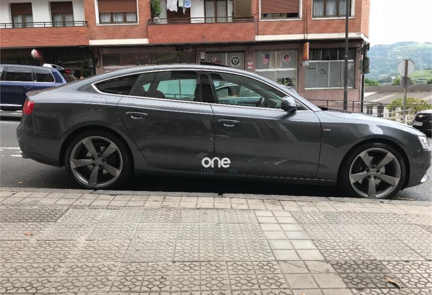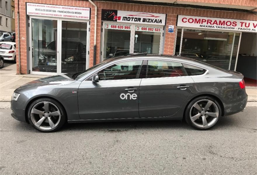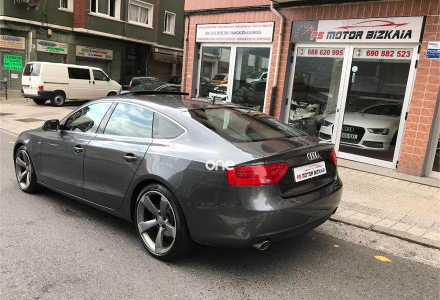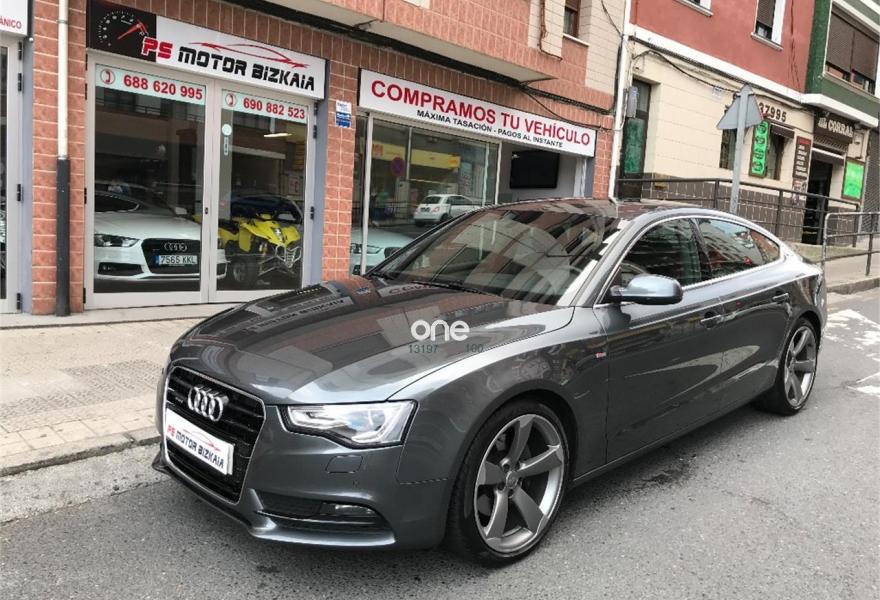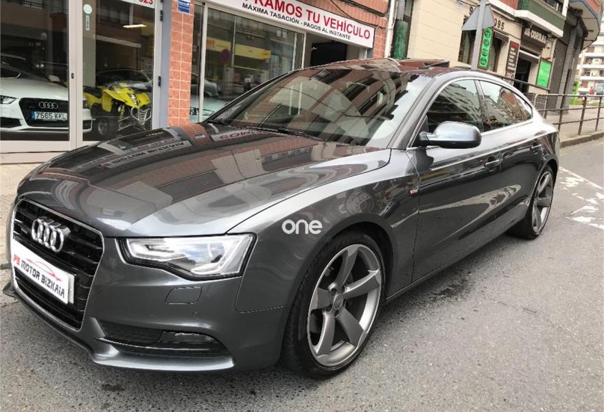 AUDI A5, Diesel, año 2014, 120000 kilómetros, color Gris / Plata metalizado, precio 28990€. Audi drive select,Audi side assist + Audi lane assist,Asientos delanteros calefactables,Inserciones en aluminio cepillado gris,Tapicería S line en tela Sprint/cuero,Cargador de CD's,Teléfono Audi Bluetooth GSM con auricular inalámbrico en el apoyabrazos central delantero de confort,Toma de corriente de 230 Voltios,Instalación básica manos libres (Bluetooth) para teléfono móvil,Volante multifunción S line,Paquete deportivo S line,Espejos retrovisores exteriores calefactables antideslumbrantes automáticamente, abatilbles eléctricamente y con función memoria,Faros de xenón Plus,Lavafaros,Aro de volante en cuero Audi exclusive,Asientos delanteros con regulación eléctrica y asiento conductor con memoria,Techo corredizo eléctrico de cristal,Sistema de control de presión de los neumáticos,Preinstalación de teléfono móvil con kit manos libres (Bluetooth) en apoyabrazos delantero,Llantas de aleación 9Jx19 diseño de 5 brazos Rotor en óptica titanio con neumáticos 255/35 R19 (Audi exclusive),Pintura metalizada,Suspensión deportiva S line,Fijación para tres asientos infantiles ISOFIX y desactivador airbag del acompañante. En venta AUDI A5 SPORTBACK 3.0 TDI 245 CV S LINE......
