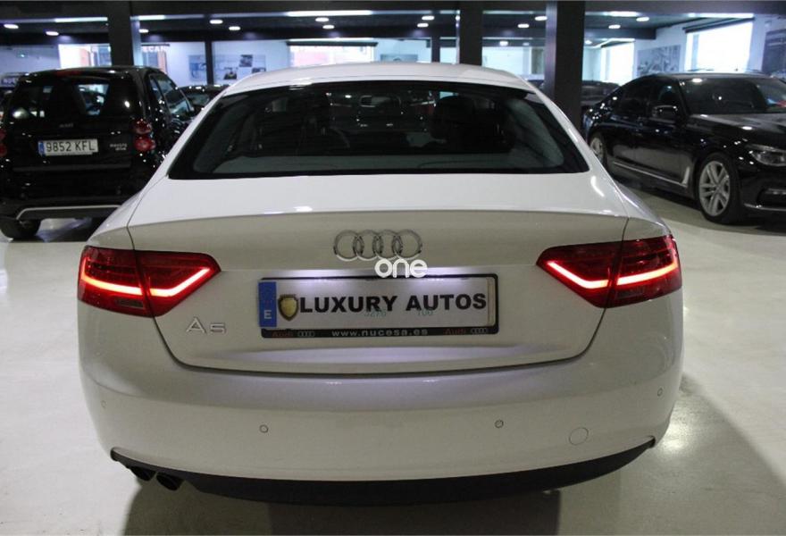 AUDI A5, Diesel, año 2012, 180000 kilómetros, color Blanco metalizado, precio 18999€. Tapicería S line en tela Sprint/cuero. Vehiculo impecable de interior y exterior,UNICO DUEÑO-NACIONAL-CERTIFICADO DE KILOMETROS Y DE NO SINIESTRALIDAD-LLAVES-HISTORIAL AL COMPLETO EN CASA OFICAL,xenon adaptativo,luz de dia,antinieblas,isofix,asientos deportivos en piel mixta,espejos electricos-plegables-calefactables,control de velocidad,clima,ordenador de abordo,volante multifuncion,AYUDA PENDIENTE/AYUDA FRENADO/AYUDA ANGULO MUERTO/AYUDA CARRIL,sensor de lluvia-luces-aparcamiento,radio CD multifuncion(AUX/SIM),se entrega revisado y transferido con un año de garantia se acepta vehiculo como parte de pago,salvo error u omision.(Luxury autos pum)..