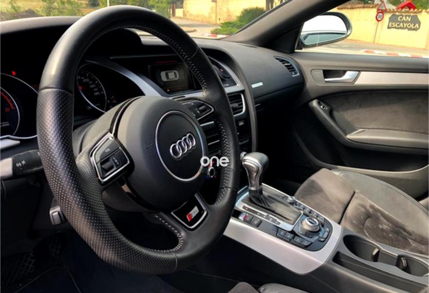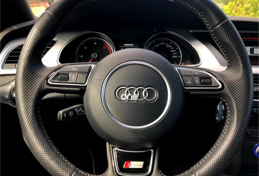 AUDI A5, Diesel, año 2016, 33918 kilómetros, color Gris / Plata metalizado, precio 29550€. Audi drive select,Paquete de Asistencia plus,Asientos delanteros calefactables,Asientos delanteros con función lumbar eléctrica,Asientos delanteros deportivos diseño "S",Inserciones interiores en aluminio mate cepillado,Tapicería S line en Alcantara/cuero,Audi Music interface,Cargador de CD's,Cargador de CD's + Reproductor de DVD,Equipo de sonido Audi,Mando a distancia (HomeLink),MMI navegación plus,Volante deportivo de tres radios multifuncional achatado en la parte inferior,Banqueta trasera de tres plazas,Alcantara/Cuero Negro/Gris Jet - Asientos Deportivos,Audi side assist (asistente de cambio de carril),Climatizador de confort de 3 zonas,Control automático de velocidad (Tempomat),Cuero Napa Fina Negro - Asientos Deportivos,Dirección dinámica "dynamic steering",Espejo retrovisor interior antideslumbrante,Faros de xenón Plus,MMI navegación,Paquete deportivo S line,Paquete estilo color negro brillante Audi exclusive,Cristales tintados oscuros,Paquete exterior S line,Pintura personalizada Audi exclusive,Suspensión deportiva S line,Audi lane assist (asistente de mantenimiento de carril),Audi side assist + Audi lane assist,Airbags laterales traseros,Audi parking system plus,Control de crucero adaptativo,Fijación para tres asientos infantiles ISOFIX y desactivador airbag del acompañante. Perfecto estado. Solo estrenado