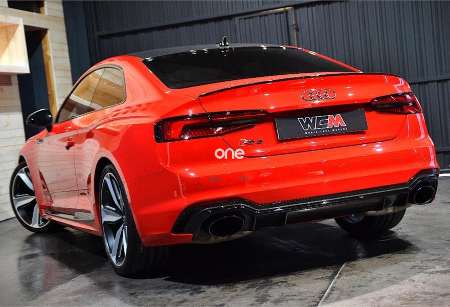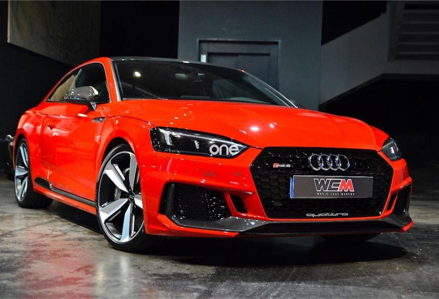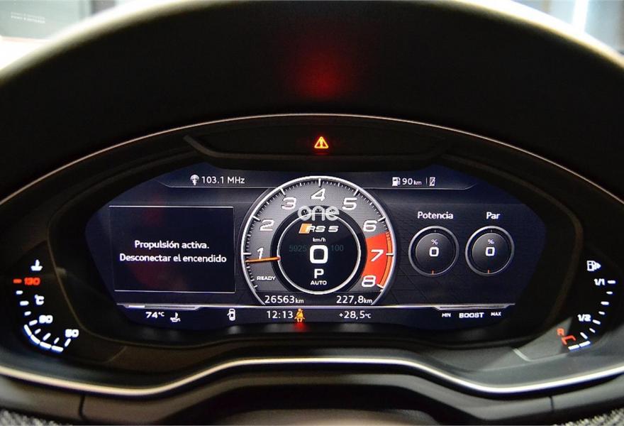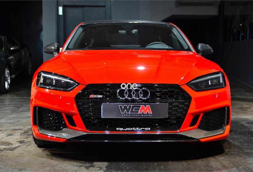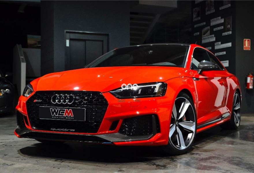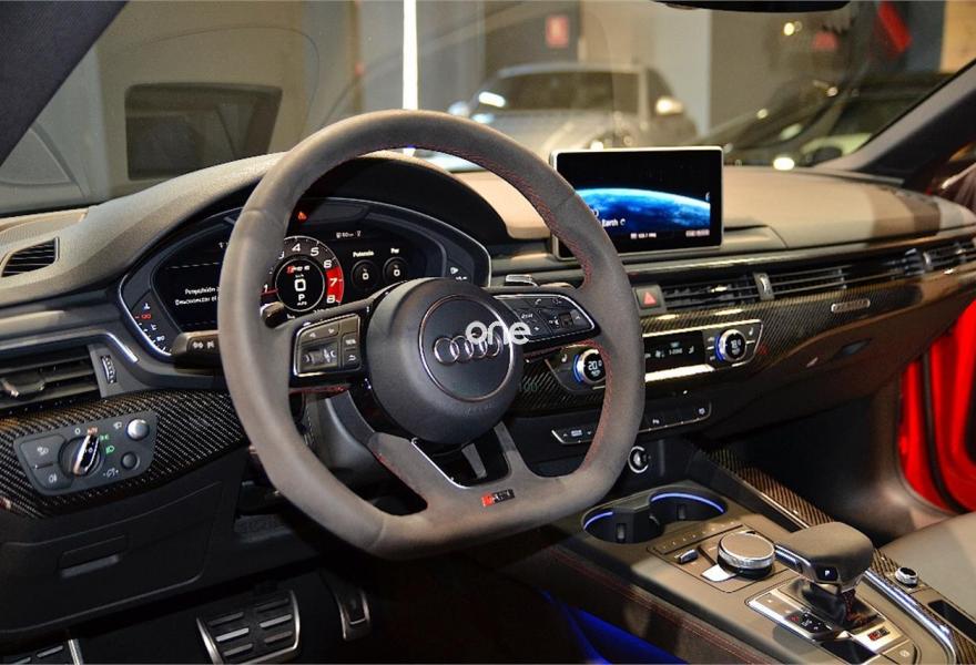 AUDI A5, Gasolina, año 2017, 25000 kilómetros, color Rojo (MISANO) , precio 89900€. Escapes deportivos RS,Paquete Dynamic,Sistema de aviso de límite de velocidad por reconocimiento de señales,Acabado en cuero ampliado de Audi exclusive,Alfombrillas Audi exclusive con logo RS color negro,Asientos delanteros calefactables,Asientos delanteros con regulación lumbar eléctrica,Asientos delanteros con regulación eléctrica y asiento conductor con memoria,Asientos delanteros deportivos,Inserciones en carbono RS Audi Exclusive,Paquete diseño RS,Tapicería en cuero Milano,Tapicería en cuero Napa con costuras en panal para asientos deportivos S,Equipo de sonido Bang&Olufsen 3D,Asistente de luz de carretera "smart beam",Audi Phone Box,Cuero Napa Negro Costuras Rojo,Dirección dinámica "dynamic steering",Espejos retrovisores exteriores calefactables y plegables eléctricamente y función de memoria,Faros Matrix LED,Paquete exterior de carbono/negro brilante,Techo de carbono,Cristales traseros oscurecidos,Llantas de aleación 9Jx20 Audi Sport diseño de 5 brazos Peak negro mate y pulidas con neumáticos 275/30 R20,Retrovisores exteriores en carbono,Diferencial trasero deportivo,Frenos cerámicos delanteros,Head-up Display,Velocidad máxima aumentada a 280 km/h,Tren de rodaje deportivo plus RS con Dynamic ride control (DRC),Cámara de visión trasera. "NACIONAL" CON GARANTIA OFICIAL AUDI HASTA EL 08/2021!!!