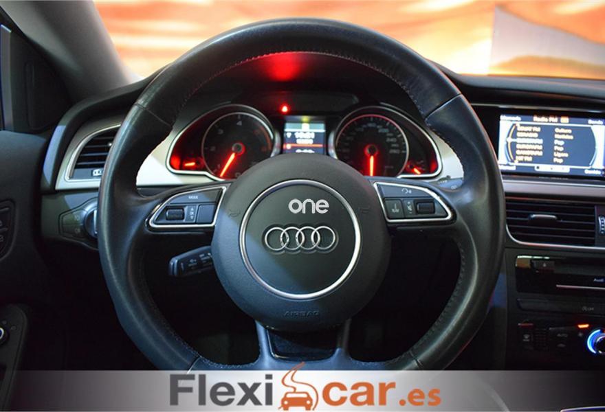 AUDI A5, Diesel, año 2014, 139990 kilómetros, color Negro metalizado, precio 22990€. Asientos delanteros normales,Inserciones interiores en aluminio mate cepillado,MMI navegación plus,Audi Music interface,Control de crucero adaptativo,Espejo retrovisor interior antideslumbrante,Lavafaros,Faros de xenón Plus,MMI navegación,Paquete estilo color negro brillante Audi exclusive,Volante deportivo de tres radios multifuncional achatado en la parte inferior,Espejos retrovisores exteriores calefactables,Negro Phantom (efecto perla),Llantas de aleación 7,5Jx17 diseño de 7 brazos "parábola" con neumáticos 225/50 R 17,Airbags laterales traseros,Fijación para tres asientos infantiles ISOFIX y desactivador airbag del acompañante.