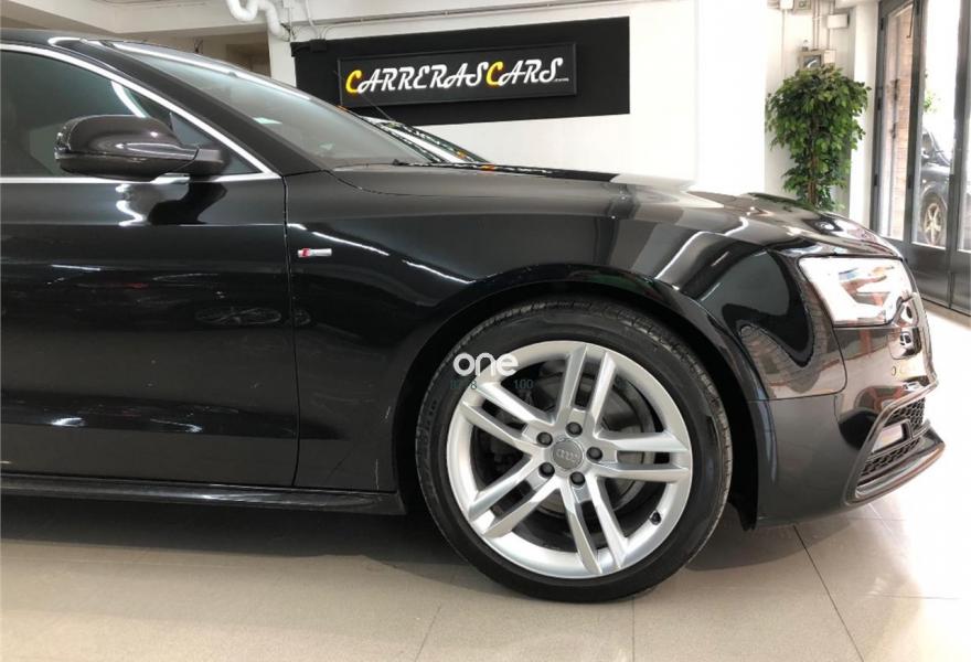 AUDI A5, Diesel, año 2016, 50000 kilómetros, color Negro , precio 29000€. Del 02-2016 con 53.53kms. Motor: Diesel 2.0TDi 190cv. Cambio: Automático- Multitronic de 8vel. Versión: S-Line , Faros Bi-Xenon Plus con luz diurna LED, Llantas 18?, Paquete S-Line ext. y Int. Doble salida de escape cromada, Sensores de aparcamiento del. y tras, Sistema Multimedia Media -Interface – MMi de Navegación, Asientos de cuero S-Line con regulación eléctrica y calefactábles , Retrovisores ext. con regulación eléctrica, térmicos y plegables, Retrovisor int. fotosensible, Apoyabrazos central, Volante multifunción con levas, Control y Limitador de velocidad, Sensor de Luz y de Lluvia, Freno de mano eléctrico, … Revisado, Pulido exterior, Lavado de interiores, Cambio de nombre y garantía de un año.