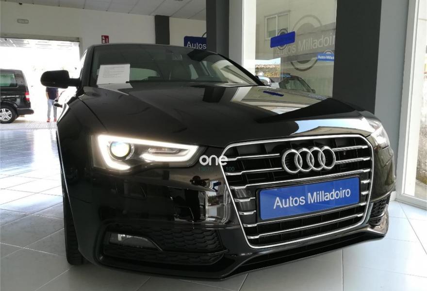AUDI A5, Diesel, año 2015, 99000 kilómetros, color Negro , precio 26900€. Asientos delanteros deportivos diseño "S",Tapicería S line en cuero Napa fina,MMI navegación plus,MMI navegación,Paquete deportivo S line,Suspensión deportiva S line. Autos Milladoiro en Santiago de Compostela ,vende este A5 190cv con 104000kms,