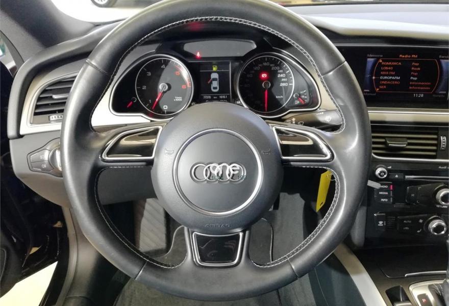 AUDI A5, Diesel, año 2013, 71400 kilómetros, color Negro (NEGRO) , precio 27500€. PRECIO SUJETO A FINANCIACIÓN. GASTOS E IVA INCLUIDOSEQUIPAMIENTO- AUTOMATICO- Pilotos traseros tipo LED- Climatizador- Radio Concert- Faros xenón- Sistema de aparcamiento asistido trasero- Lavafaros- Sensor de luz y lluvia- Tapizado Arkade- Volante multifunción deportivo de cuero- Sujeciones traseras ISOFIX para asientos infantiles- Sistema de información al conductor color- Luces adicionales en habitáculo- Reposabrazos central delantero- Radiador para países cálidos- 2968 cc (3.0 Ltr) 204CV/150kW- Multitronic- Regulador de velocidad- 225/50 R 17 .. Y- 7 1/2 J x 17 aleación- Rueda de emergencia- ABS+EDS+ESP- Norma antipolución EU5- Bicapa sólido