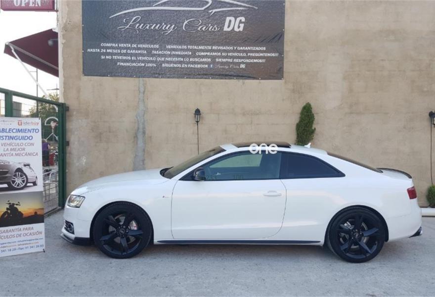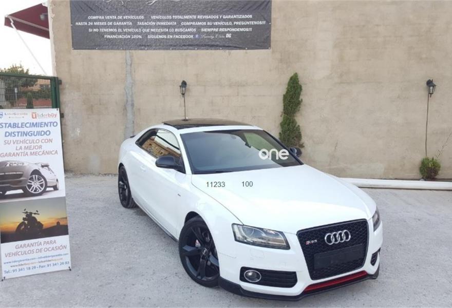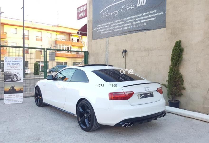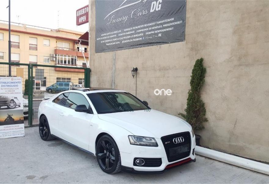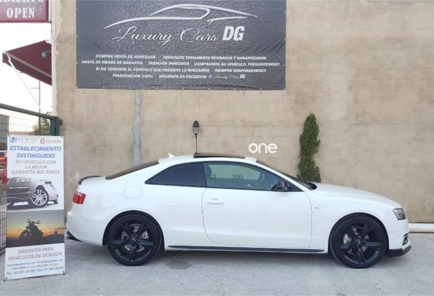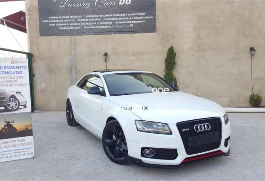 AUDI A5, Diesel, año 2009, 102000 kilómetros, color Blanco , precio 18500€. Receptor de TV Analógico y Digital, y Radio Digital,Alcantara/Cuero Negro - Asientos Deportivos,Asientos delanteros calefactables,Asientos delanteros deportivos diseño "S",Cuero Milano Negro,Inserciones en aluminio plata holograma,Inserciones en lacado brillante negro,Paquete deportivo S line,Paquete portaobjetos,Revestimiento interior del techo en negro,Tapicería S line en Alcantara/cuero,Audi Music interface,Cargador de CD,Mando a distancia (HomeLink),MMI navegación plus,Preinstalación de teléfono móvil con kit manos libres (Bluetooth) en apoyabrazos delantero,Radio Digital DAB,Espejo retrovisor interior antideslumbrante,Faros de xenón Plus,Lavafaros,Paquete cuero,Paquete de aluminio ampliado,Paquete maletero,Sistema de alarma antirrobo con protección contra remolcado,Sistema de control por voz,Techo solar panorámico,Volante multifunción S line con levas de cambio,Blanco Ibis,Cristales tintados oscuros,Espejos retrovisores exteriores calefactables antideslumbrantes automáticamente y abatilbles eléctricamente,Llantas de aleación 9Jx19 diseño de 20 radios con neumáticos 255/35 R19 (Audi exclusive),Paquete exterior S line,Sin inscripción trasera de cilindrada,Sin inscripción trasera de modelo y cilindrada,Suspensión deportiva S line,Audi Hill hold assist,Audi parking system plus,Audi parking system trasero,Fijación para tres asientos infantiles ISOFIX y desactivador airbag del acompañante. Se Vende