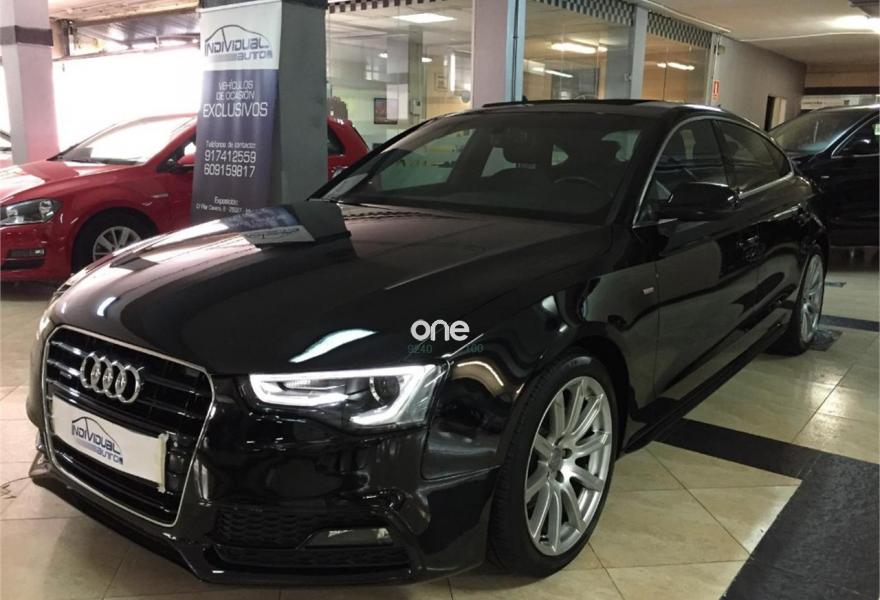 AUDI A5, Diesel, año 2014, 98500 kilómetros, color Negro metalizado, precio 23900€. Paquete business,Asientos delanteros deportivos diseño "S",Inserciones en aluminio cepillado gris,Tapicería S line en tela Sprint/cuero,MMI navegación plus,Teléfono Audi Bluetooth GSM,Audi Sound System,Audi Music interface,Equipo de sonido Bang & Olufsen,Banqueta trasera de tres plazas,Climatizador de confort de 3 zonas,MMI navegación,Sistema de alarma antirrobo con protección contra remolcado,Techo corredizo eléctrico de cristal,Volante multifunción S line,Espejos retrovisores exteriores calefactables,Llantas de aleación 8,5Jx18 diseño de 15 radios "Estrella" con neumáticos 245/40 R 18,Negro Brillante,Suspensión deportiva S line,Suspensión deportiva,Volante deportivo de tres radios multifuncional con levas para el cambio multitronic/S tronic,Airbags laterales traseros,Audi parking system plus,Fijación para tres asientos infantiles ISOFIX y desactivador airbag del acompañante. NACIONAL 1 PROPIETARIO CON LIBRO DE MANTENIMIENTO.