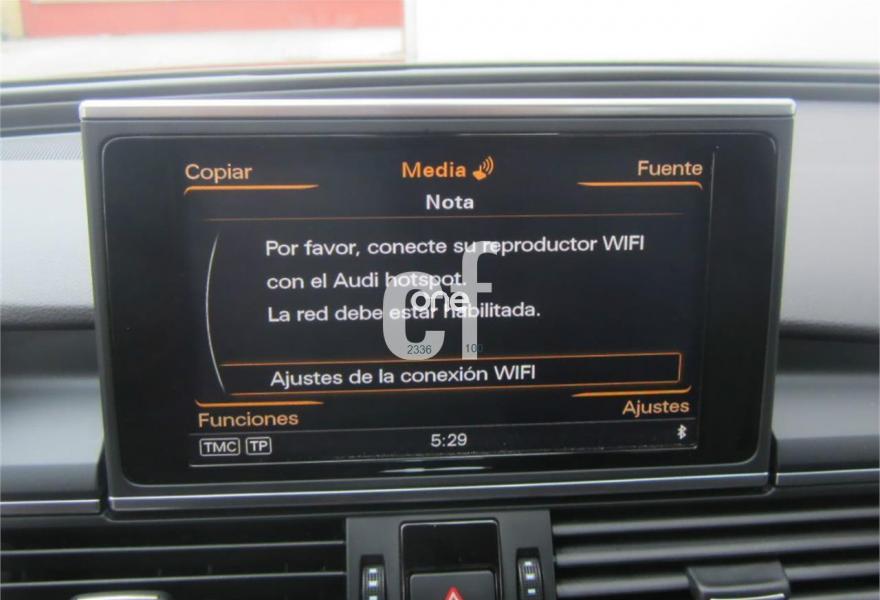AUDI A6, Diesel, año 2014, 19000 kilómetros, color Beige metalizado, precio 38600€. Paquete Comfort,Asientos de confort con función memoria,Asientos delanteros deportivos,Inserciones en aluminio mate cepillado,Reposabrazos de las puertas en cuero,Paquete de cuero Valcona Exclusive (paquete 1),Tapicería en cuero Milano,Audi music interface,MMI navegación plus con MMI Touch,Radio Digital DAB,Teléfono Audi Bluetooth GSM online con teléfono en el reposabrazos central delantero,Volante deportivo de cuero multifuncional de 3 radios,Acabado interior ampliado,Asientos delanteros eléctricos con función memoria para el conductor,Asistente de luces largas,Cortinillas manuales en luneta posterior y en las ventanas traseras,Cuero Milano Negro - Asientos Confort,Espejo interior antideslumbrante automático,Espejos retrovisores con función de memoria,Espejos retrovisores exteriores plegables eléctricamente con función de memoria,Faros de Xenon plus,Iluminación de ambiente,Llave de confort,Luz adaptativa "adaptive light" con regulación continua del alcance de las luces,Maletero con apertura y cierre eléctrico,MMI Navigation,Molduras de entrada al vehículo S line,Paquete de iluminación exterior e interior,Paquete deportivo S line,Paquete exterior S line,Paquete portaobjetos,Paquete técnico,Paquete técnico y navegación,Preinstalación de teléfono móvil con kit manos libres (Bluetooth),Sistema de alarma antirrobo,Techo panorámico eléctrico,Espejos retrovisores exteriores antideslumbrantes automáticos plegables eléctricamente y con función de memoria,Espejos retrovisores exteriores plegables eléctricamente,Llantas de aleación 8,5Jx19 diseño de 15 brazos con neumáticos 255/40 R 19,Pintura metalizada,Volante deportivo de cuero multifuncional de 3 radios con levas de cambio,Audi parking system plus,Cámara de visión trasera,Fijaciones Isofix para el asiento del compañante con interruptor para desconectar el airbag. RE-ESTRENO AUDI 2014.