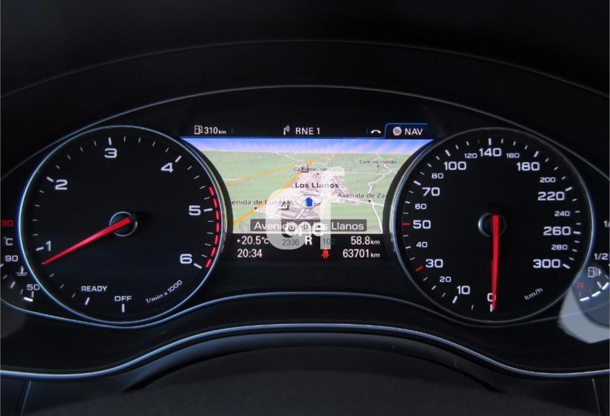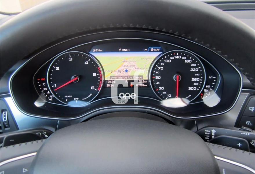 AUDI A6, Diesel, año 2015, 63000 kilómetros, color Negro metalizado, precio 31200€. Paquete técnico,Inserciones en aluminio mate cepillado,Paquete de cuero,Tapicería en cuero Milano,MMI navegación plus con MMI Touch,Cuero Milano Negro,Iluminación de ambiente,Espejo interior antideslumbrante automático,Sistema de alarma antirrobo,Sistema de lavafaros,Paquete portaobjetos,Espejos retrovisores exteriores antideslumbrantes automáticos plegables eléctricamente,Llantas de aleación 8Jx17 diseño 10 brazos con neumáticos 225/55 R 17,Pintura metalizada,Audi parking system plus,Audi phone box con Audi connect,Acabado interior ampliado,Cable USB,MMI Navegación. COMO NUEVO. Procedente directamente de Concesión oficial AUDI. Nacional.