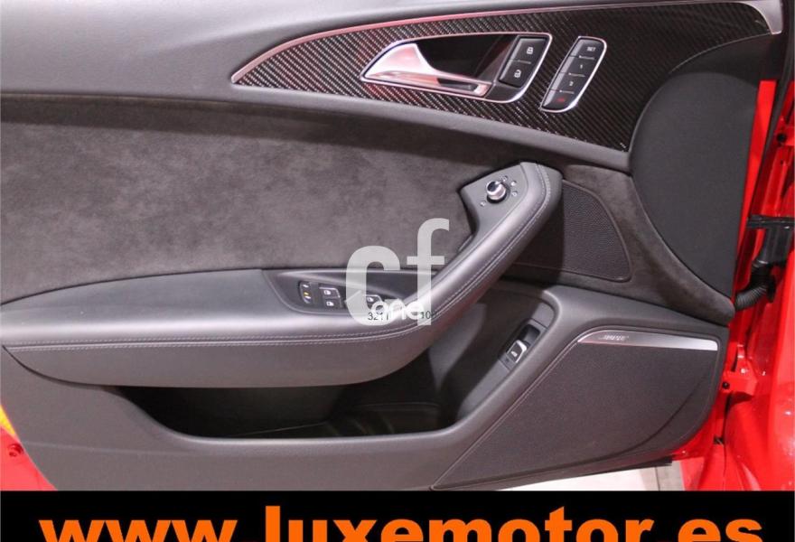 AUDI A6, Gasolina, año 2016, 36817 kilómetros, color Rojo , precio 99990€. Asistente de aparcamiento park assist,Audi side assist con Audi pre sense rear y Audi active lane assist,Paquete de asistentes incluido Audi pre sense plus,Sistema de aviso de límite de velocidad por reconocimiento de señales,Alfombrillas en colores especiales Audi exclusive,Asientos calefactados delanteros,Asientos de confort con función memoria,Audi side assist con Audi pre sense rear,Moqueta y alfombrillas en colores especiales Audi exclusive,Paquete de cuero Valcona Exclusive (paquete 1),Paquete de piel ampliado de Audi exclusive,Paquete en piel Valcona (Paquete 1) con costuras en panel de abeja de Audi Exclusive,Revestimiento interior del techo en Alcantara de color negro, costuras Audi Exclusive,Tapicería en cuero Valcona RS,Audi phone box con Audi connect,Cargador de 6 DVD / CD en la guantera,Radio digital DAB,Sistema de sonido BOSE Surround,Asistente de luces largas,Cable USB,Cierre servoasistido de las puertas,Cuero Valcona RS Negro/Costura Gris - Techo Negro - Asientos RS,Dirección dinámica,Faros Audi Matrix LED,Interface para sistema de localización de vehículos (preinstalación),Llave de confort (con alarma),Ribetes para asientos de confort de Audi exclusive,Set de fijación con guías en el maletero,Tapa de motor con aplicaciones de carbono,Techo panorámico eléctrico,Volante y pomo en cuero Audi exclusive,Carcasas de espejo exterior aluminio mate,Cristales dobles insonorizantes y aislantes delanteros y tintado detrás,Cristales tintados oscuros,Llantas de aleación 9,5 J x 21 diseño de 5 radios en óptica de titanio mate con neumáticos 285/30 R21,Pintura personalizada Audi exclusive,Rojo Misano (efecto perla),Pintura efecto perla,Sistema de escape RS,Frenos cerámicos,Head-up display,Paquete dynamic plus,Tren de rodaje deportivo plus RS con DRC,Volante deportivo de cuero multifuncional de 3 radios con levas de cambio, calefactable,Audi active lane assist,Control de crucero adaptativo incluye Audi pre sense front,Cuatro cámaras de entorno. LUXEMOTOR