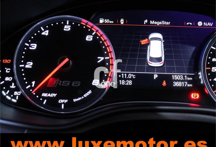 Espectacular¡¡¡RS6 PERFORMANCE 4.0 TFSI V8 BITURBO 605cv,cambio automatico Stronic doble embrague,faros LED y lavafaros,llantas 21",tapiceria cuero negro con asientos deportivos,climatizador bizona automatico,sistema frenos carboceramicos,navegador MMI Plus Audi,volante multifuncion,control crucero velocidad,techo solar panoramico,todos extras...libro de mantenimiento Audi.